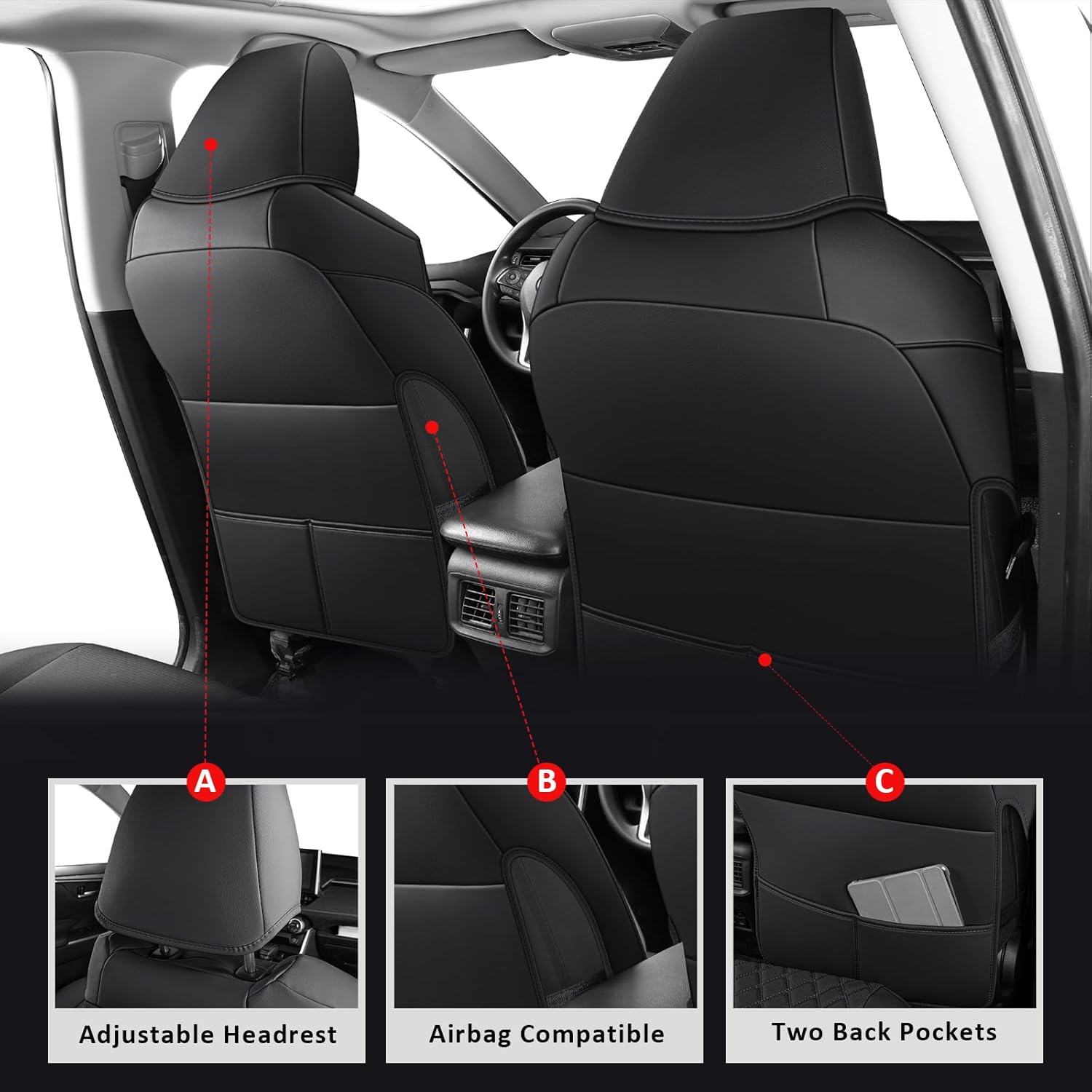 MIROZO Rav4 Seat Covers Full Set,Waterproof Car Seat Covers Faux Leather Seat Covers Compatible with 2019-2025 Toyota RAV4 Hybrid LE XLE Limited Automotive Seat Cover Car Accessories