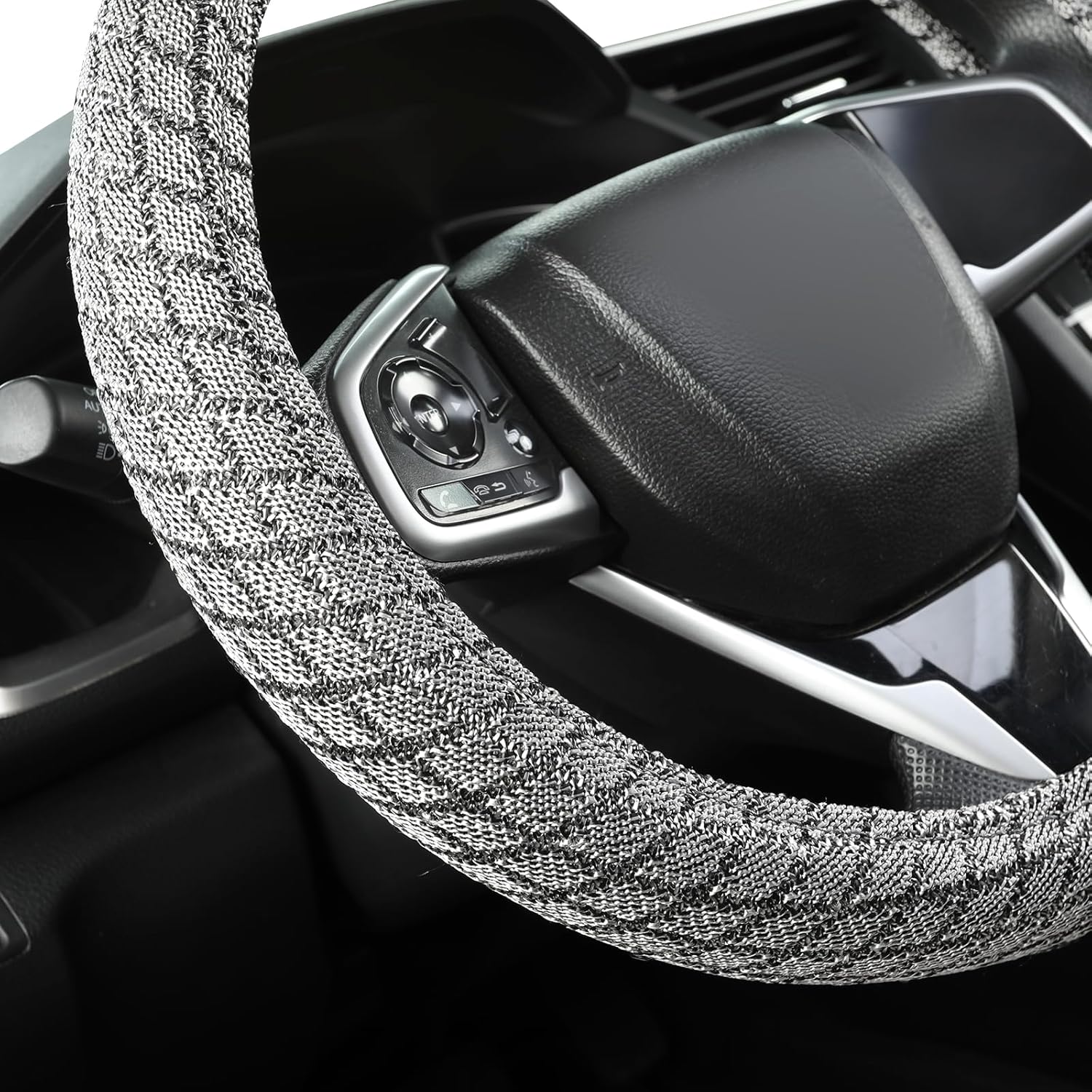 - *Premium Durable Materials* Our steering wheel cover is made of Ultra-breathable Luxury 3D Bright Silk Material,Enjoy long-lasting performance that enhances driving comfort and control.The textured surface further enhances skid resistance, making it an ideal choice for those with sweaty hands, reducing hand fatigue on long journeys.