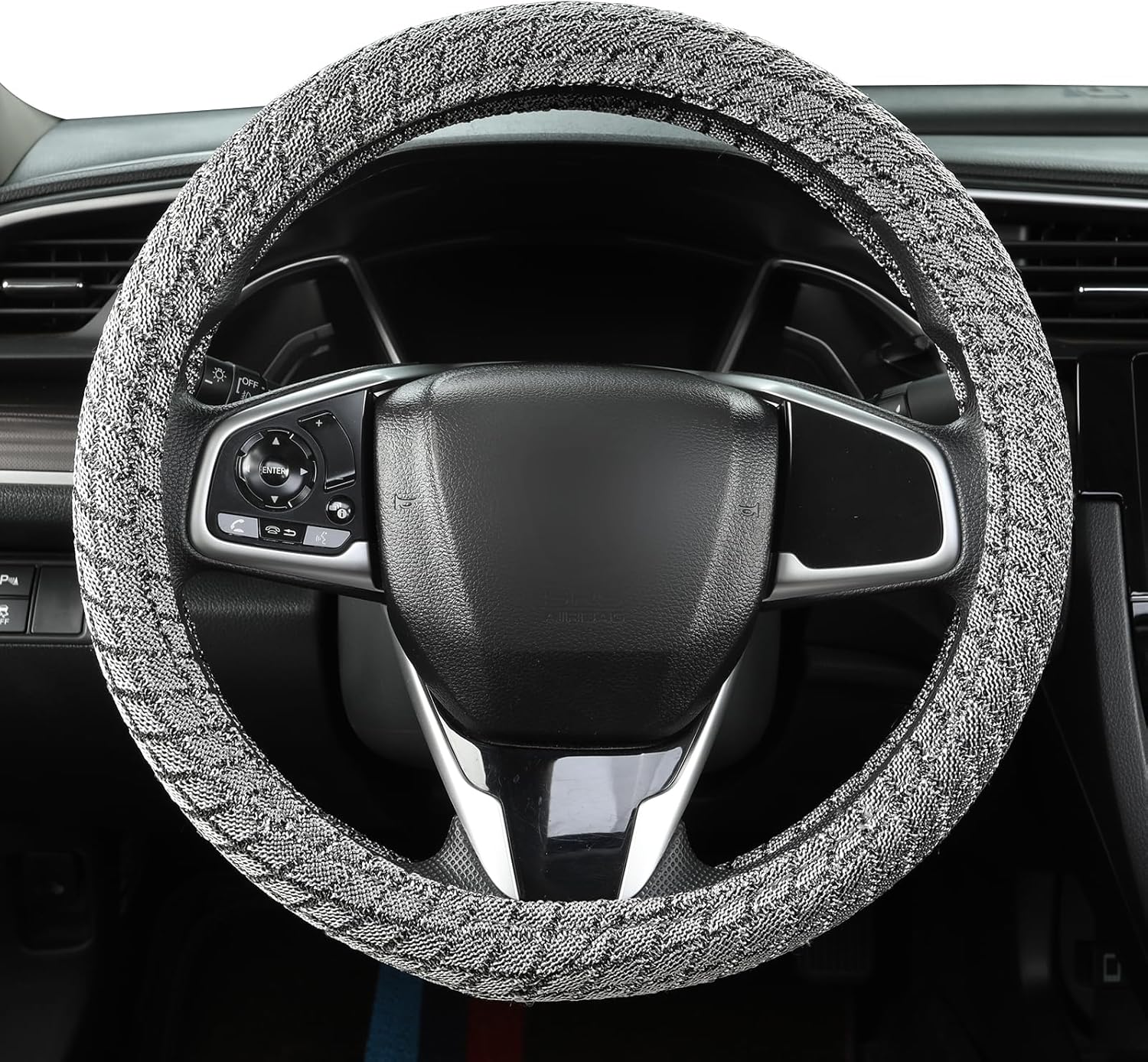 Auto Newer Breathable Steering Wheel Cover Suitable For Four Seasons,Anti-Slip Design,Odorless,Easy Carry ,Unviersal Fit for Truck SUV Sedans Vans,Interior Accessories Standard Size[14" 1/2-15"](Grey)