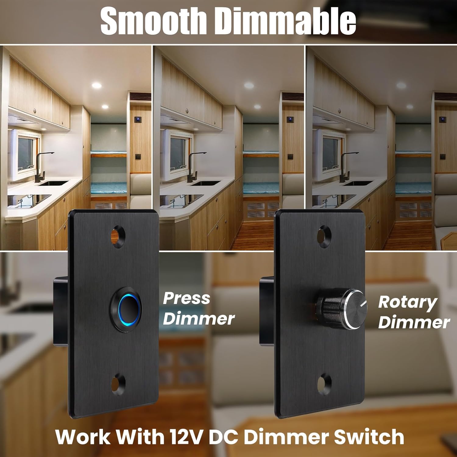 - Super Bright + No Flicker: 300lm 3 inch rv recessed led lights 12v offer ample brightness, remains flicker-free during extended use, features smooth dimming capability from 0%-100%, and is compatible with a 12V DC dimmer switch (not included)