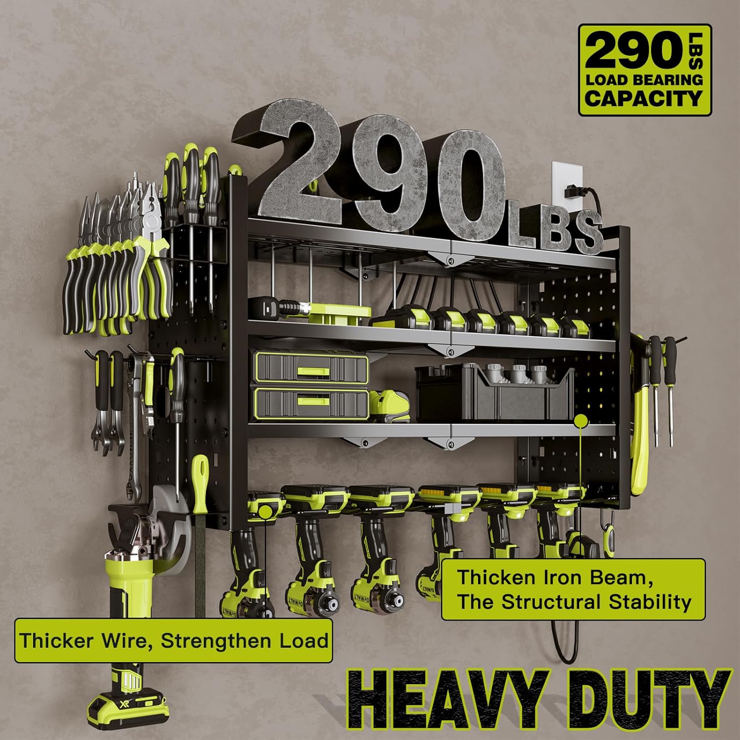 - Robust Weight Capacity: With a sturdy construction that can hold up to 290 lbs, this organizer is built to support all your essential tools and accessories. Dependable strength for all your heavy-duty needs