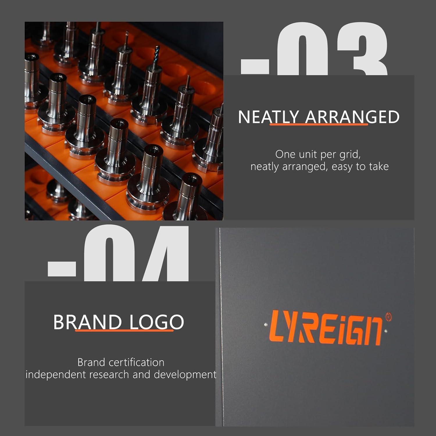- EASY INSTALLATION AND AFTER SALE GUARANTEE: All of LYREIGN CNC machined tool holders come pre-assembled. No need to purchase a separate CNC tool box. Just follow the installation instructions to install the components and get started. All LYREIGN CNC tool cart series feature the unique LYREIGN LOGO and exclusive document bag. If you have any questions, please contact us in time, we will provide various solutions for your reference within 24 hours!