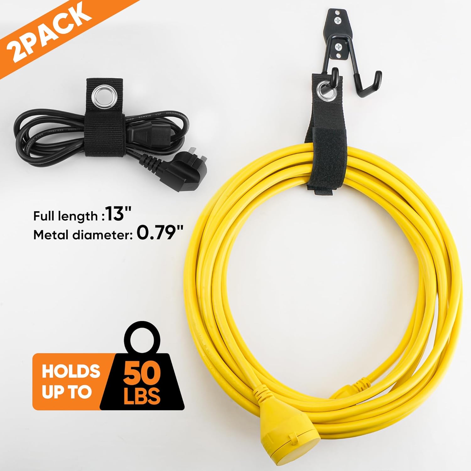 - Pack of 2 Heavy-Duty Storage Straps: Constructed from heavy-duty weatherproof polypropylene, featuring industrial-strength hook and loop fasteners and rust-resistant stainless steel grommets, these heavy-duty storage straps are designed for long-lasting use—indoors or outdoors. With a capacity to hold up to 50 lbs (22 kg), you can say goodbye to bulky cord reels. Nacial storage straps are the ultimate solution for organizing extension cords, hoses, ropes, and much more!