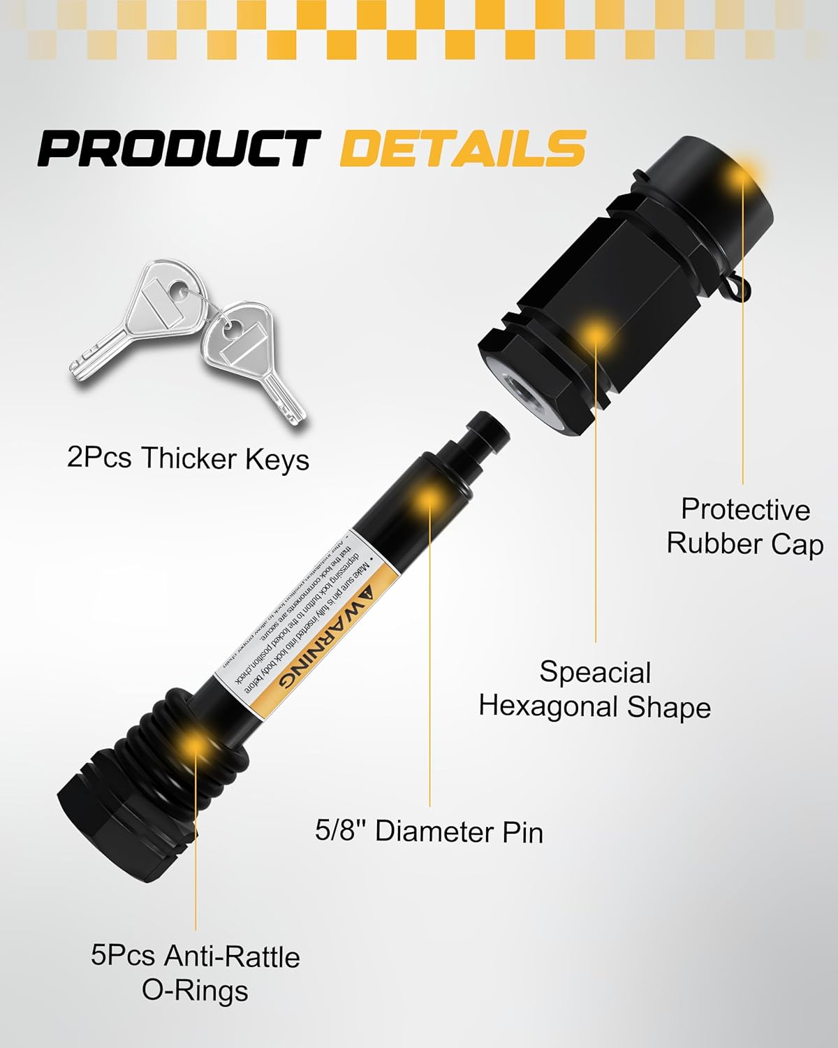 - WEATHERPROOF PROTECTION: Our hitch lock is equipped with a weatherproof rubber cap, safeguarding it from the elements and ensuring long-lasting reliability in all weather conditions