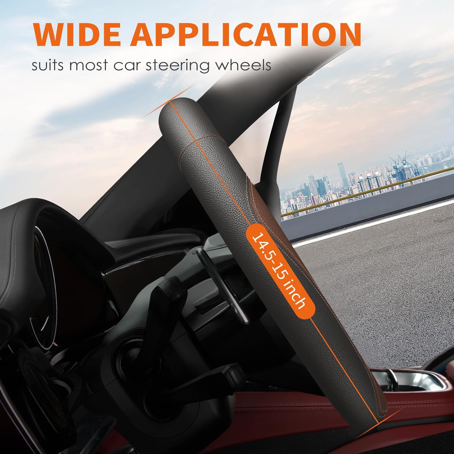 HOTOR Car Steering Wheel Cover - Universal Car Accessory for Diverse Cars, Durable Leather Cover with Anti-Slip Lining, for Steering Wheel with a Diameter of 14.5"-15", Brown