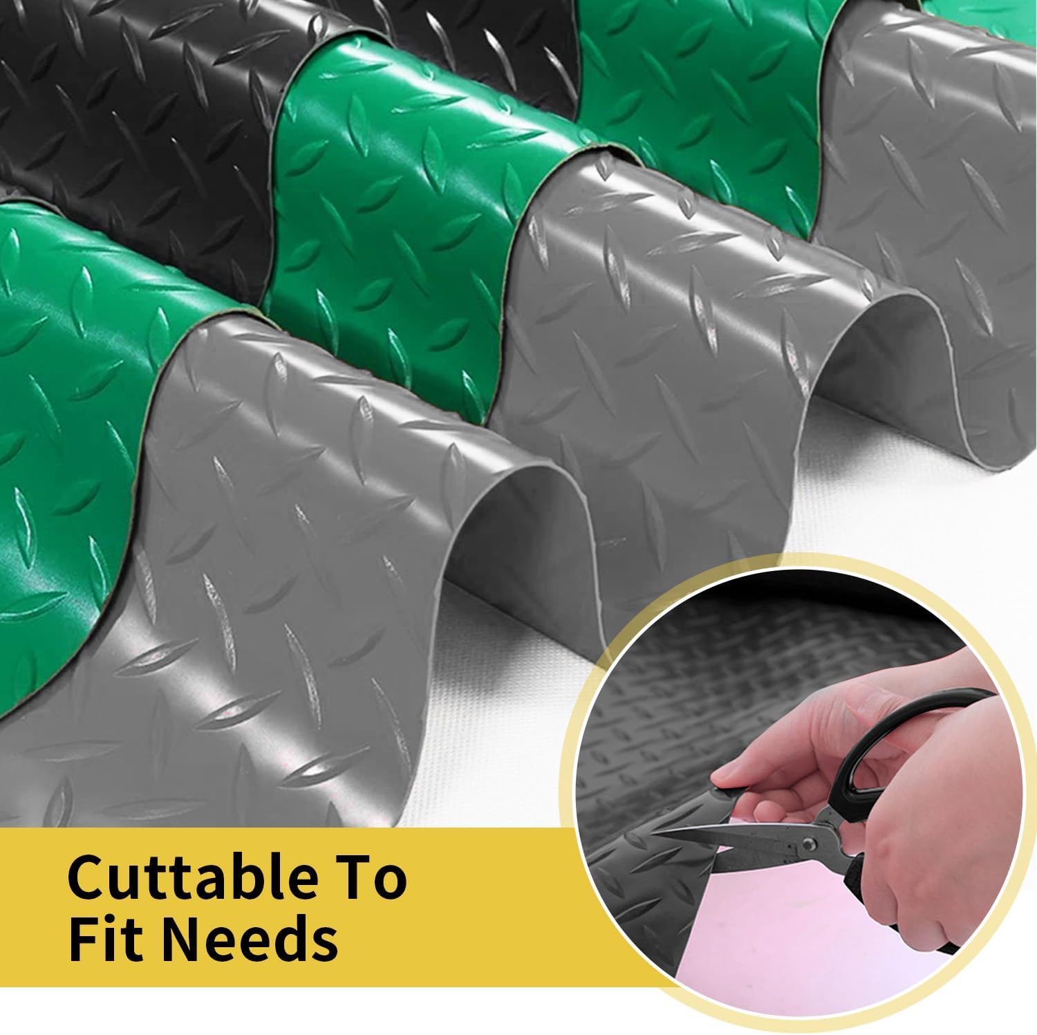 - DURABLE & SLIP-RESISTANT: Upgrade 2.0MM Sturdy Thicker PVC Material. Garage floor mats are with embossed diamond plate patterns which are totally anti-slip for safe in/out, greatly increasing the traction.