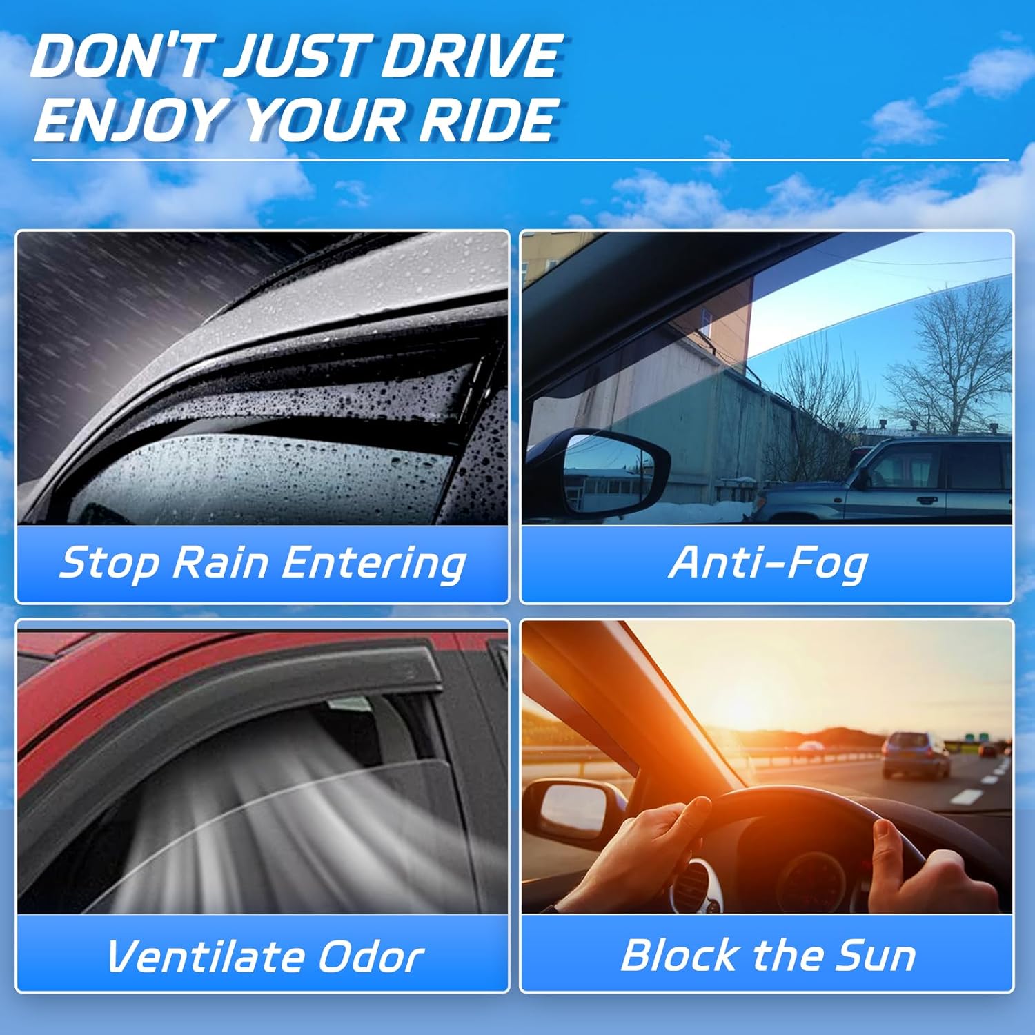 - Easy Installation: OUTSIDE MOUNT style, installs in minutes, just stick onto the window with automotive grade adhesive pre-applied to the vent visors. No drilling or special hardware required