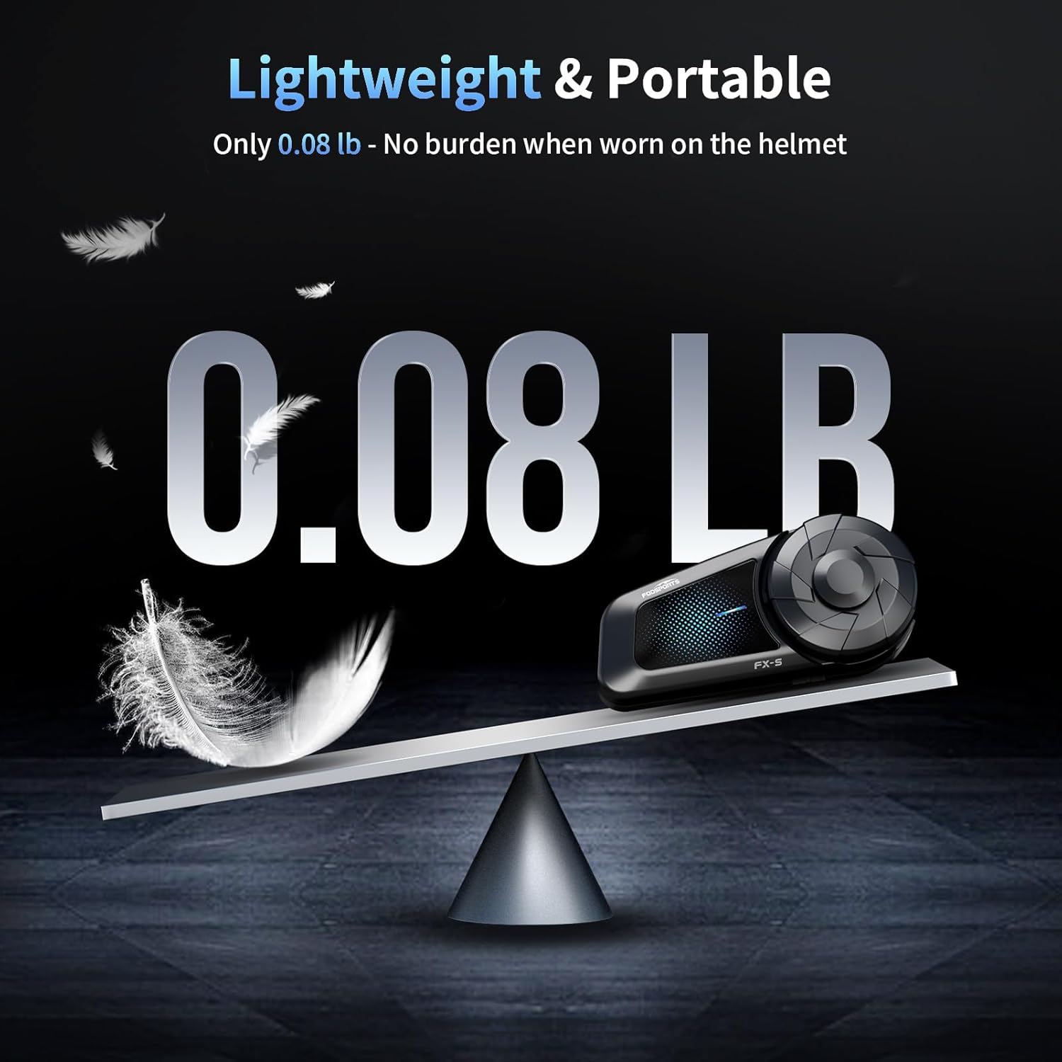 - Advanced BT 5.4 Chip, 2-Way Intercom: FX-S motorcycle Bluetooth headset adopts state-of-the-art Qualcomm Bluetooth 5.4 chip, it provides more stable signal and wide range with low latency. Support 2 riders to enjoy clear calls and music up to 1000m