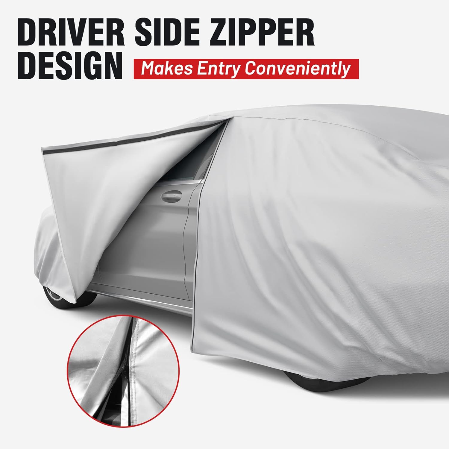 - 【Driver Side Zipper Design】- On the driver side, there is a zipper design on the car cover for easy entry. It is convenient for you to get into the car just in case it is already covered. Easy in and out without taking off the cover.