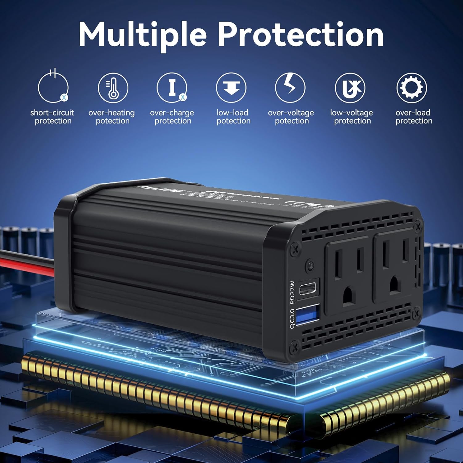 - 【Durable metal housing】The aluminum alloy housing of this car power inverter provides robust protection and efficient heat dissipation, ensuring long-lasting performance. Car ac adapter inverter - equipped with advanced intelligent chips that automatically detect the voltage and current requirements of different devices, preventing overheating, undervoltage, overcurrent, overvoltage, overload, and short circuits. Your safety is always our top priority
