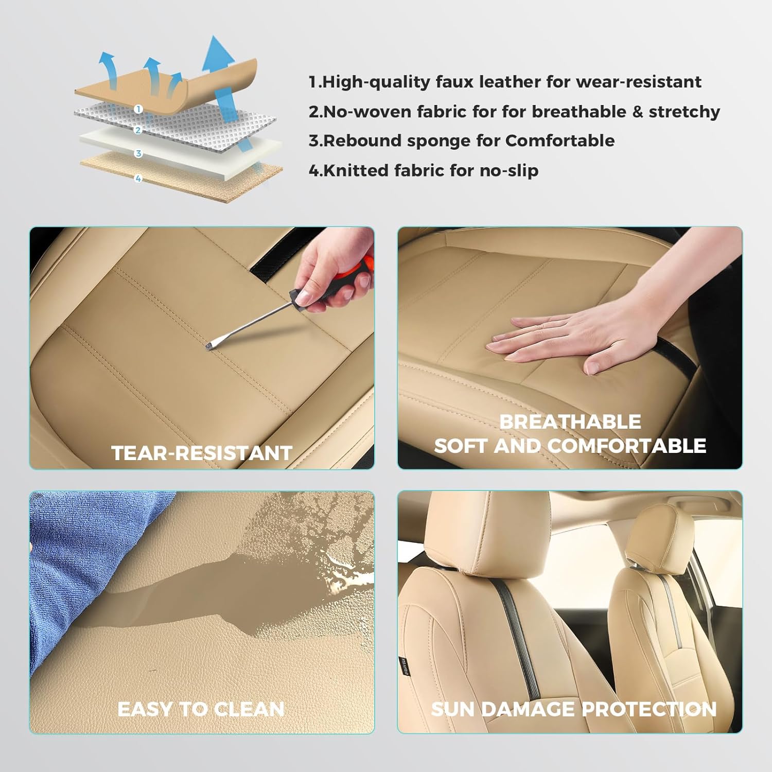 - Safety and Convenience - Our seat covers sets are made to keep you safe and comfortable. They're fully compatible with all airbag systems. Plus, they won't mess with your heated or cooled seats, so you stay comfy no matter the weather. The back seat covers are also designed to work perfectly with baby car seats, keeping your little ones safe and snug on every trip