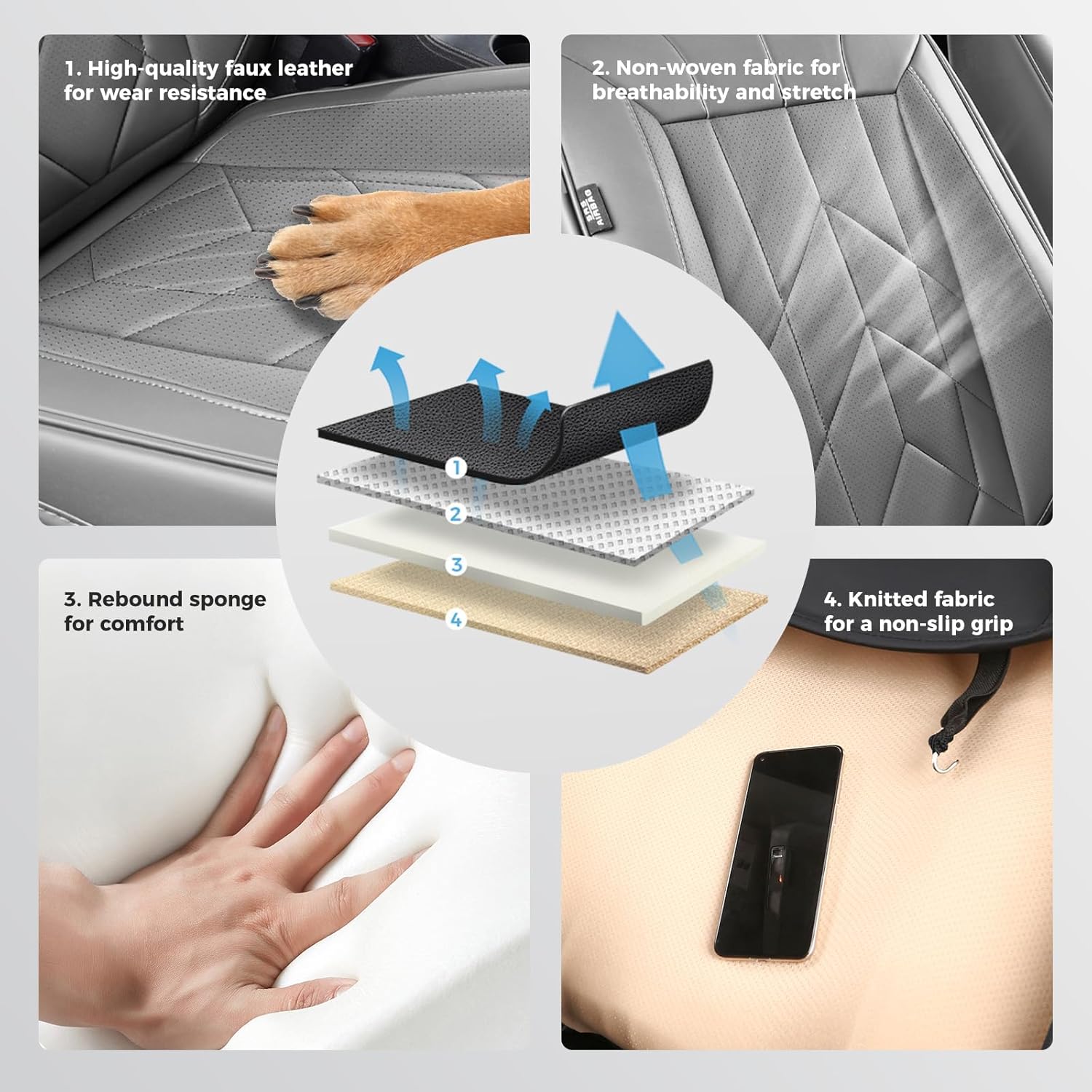 - Premium Car Seat Protector: This car seat cover set features a four-layer structure for superior waterproof protection, shielding your seats from spills, pet scratches, and harmful UV rays. Easy to clean with a damp cloth, keeping your waterproof car seat cover looking new.