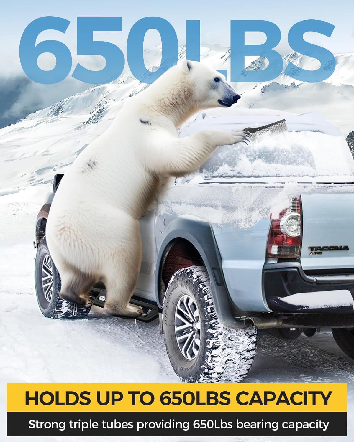 - 【650lbs Stability】Reinforced, triple-tube design increases KYX side step's durability,offering a 600lbs bearing capacity on each side. Proper ground clearance protects floorand sides from damaging shocks