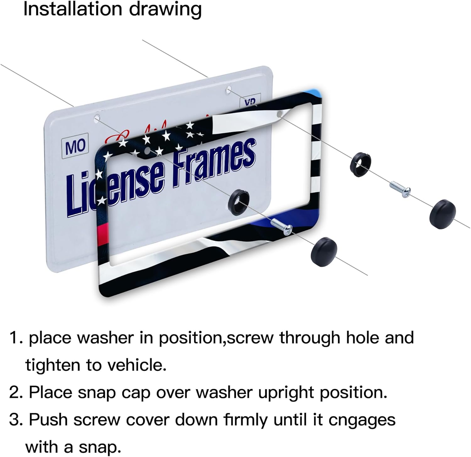 - Package Content: You Can Get 2 Pieces Aluminum Decorative license plate frame flag In Total, 1 license plate cover flag in Front And 2 license cover american in Back, Screw Fittings Included; The Complete Combination Makes Our Car Different From Others, The frames for car license plates american flag Are Also A Nice Gift For Those Who Like To Decorate Cars At The Same Time