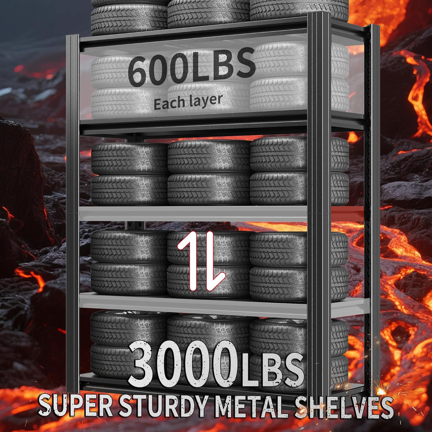 - 【Heavy-Duty Capacity】Our industrial garage shelving unit boasts a robust 2,500 lbs capacity, with each shelf supporting up to 500 lbs. Constructed from high-quality metal with reinforced double-layer legs, these multi-purpose garage storage shelves are designed to handle the toughest loads, making them ideal for garages, warehouses, and workshops.
