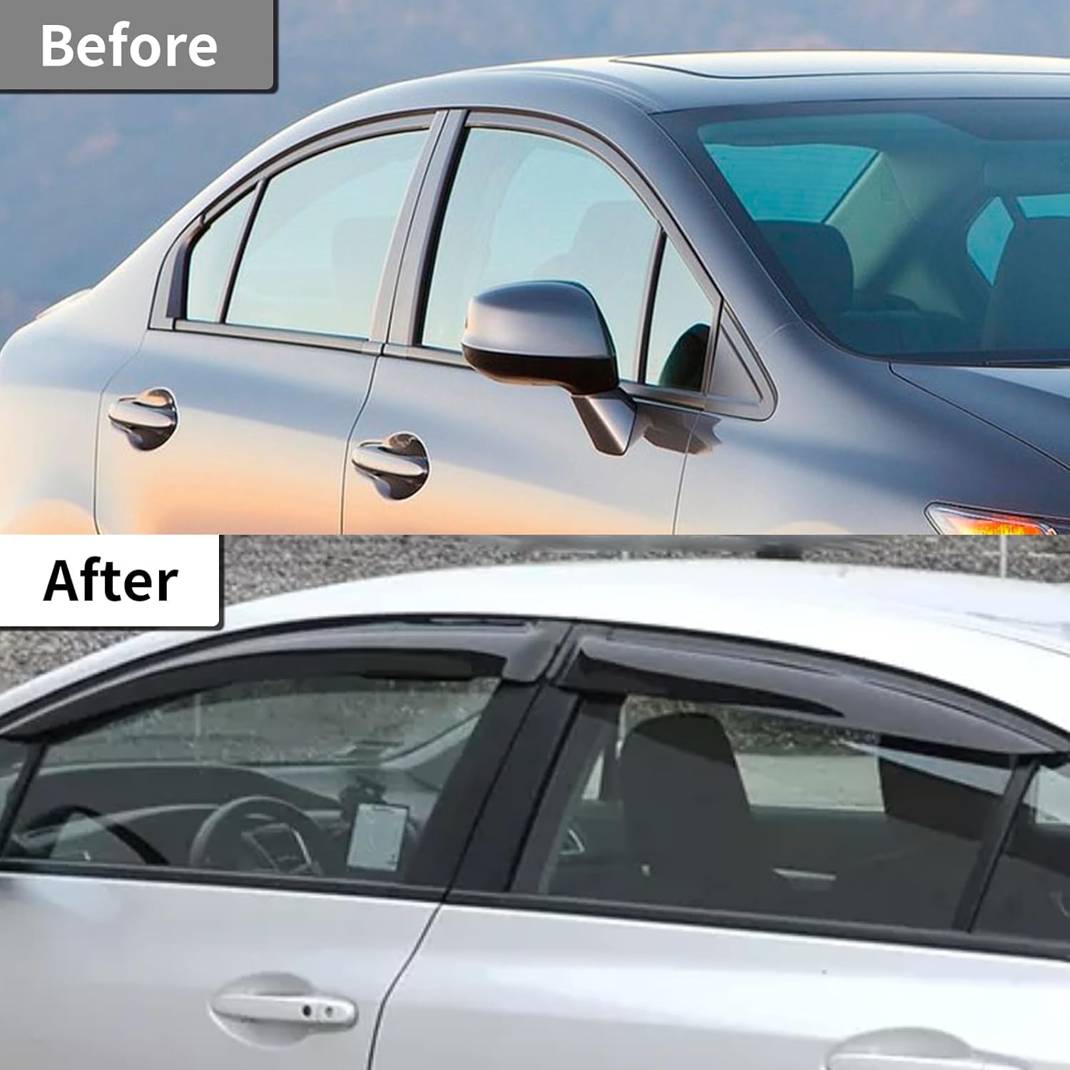 Rain Guards Side Window Visor Vent Outside Mount, 4PCS Fits for Honda Civic 4-Door Sedan 2012 2013 2014 2015