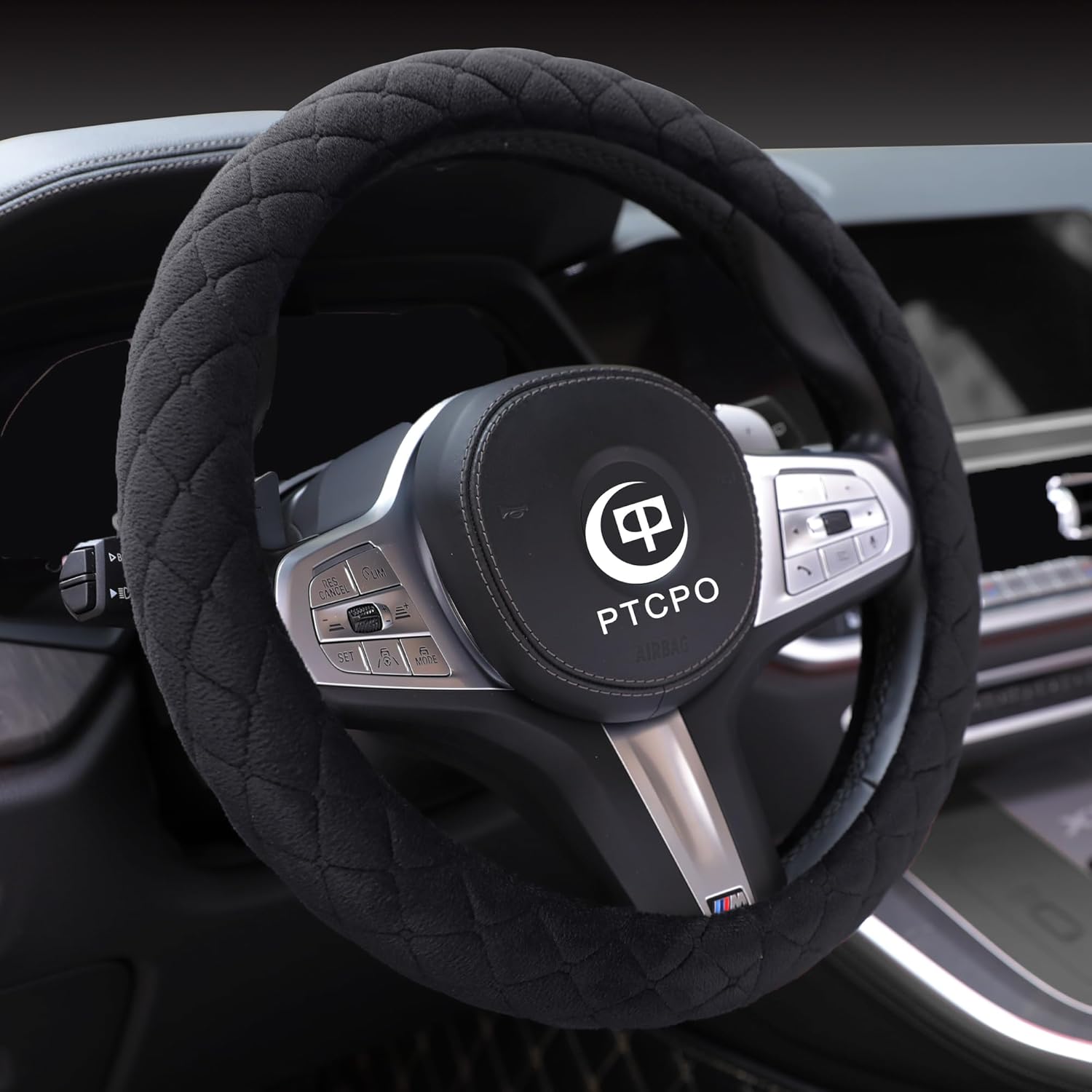 Soft Car Steering Wheel Cover for Sedan, SUV, Warm Luxury Velvet, Odorless, Universal, Anti Slip, Summer Winter, Black, Large Size[15" 1/2-16"](39-41cm)