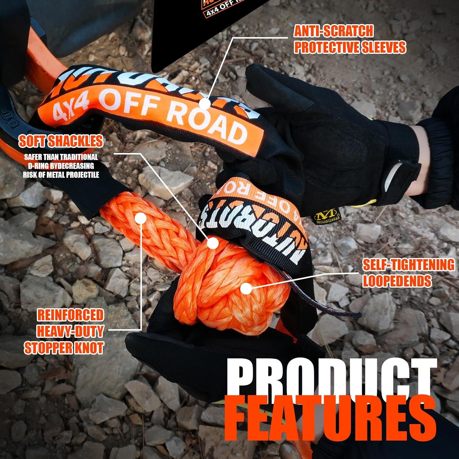 - TOP QUALITY :Our kinetic rope double braided with 100% nylon n66,with higher strength, better resilience and abrasion resistance, the elongation can reach 30%-35%,will help you get unstuck easily
