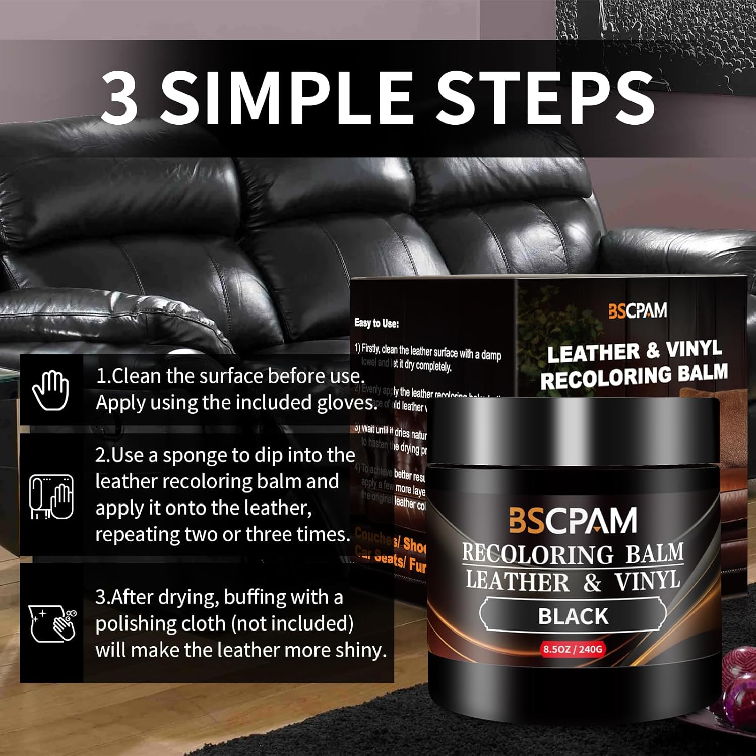 - Professional Leather Recoloring Balm: BSCPAM advanced leather repair gel is cream utilizes an advanced formula,effectively repairs scratches, cracks, and wear on the surface of leather, restoring its original appearance.Its special formula can penetrate the leather fibers, effectively repairing surface scratches, cracks, and wear while providing an additional protective layer to prevent future damage, helping to extend the lifespan of leather items