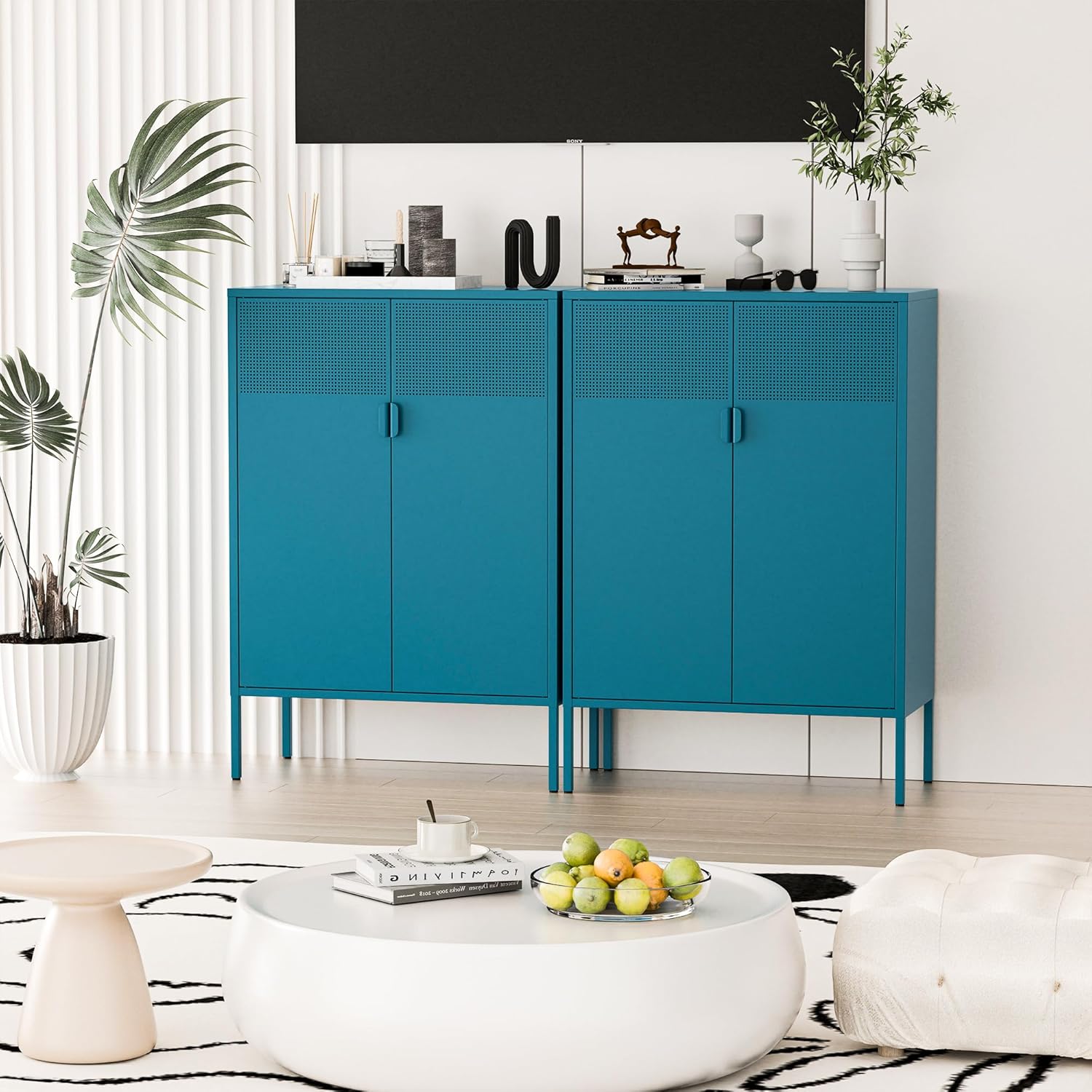 2 Mesh Door Metal Cabinet with Adjustable Shelves, Multipurpose Peacock Blue Storage Cabinet, 3-Tier,Metal Storage Cabinet for Office Home,Hallway(Peacock Blue, 47''H)