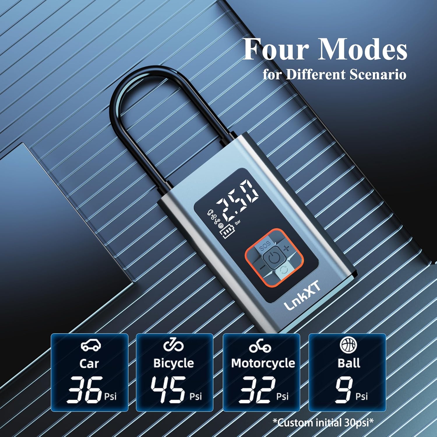 - 4 Convenient Operating Modes – Designed with versatility and simplicity in mind, this portable tire inflator offers four distinct operating modes: one for car tires, one for bikes and motorcycles, one for inflating balls, and one for other inflatable items. Each mode is pre-set with optimal pressure settings, making it easy to switch between tasks without manual adjustments. Whether you’re at home, on the road, or at the park, this pump is ready for the job.