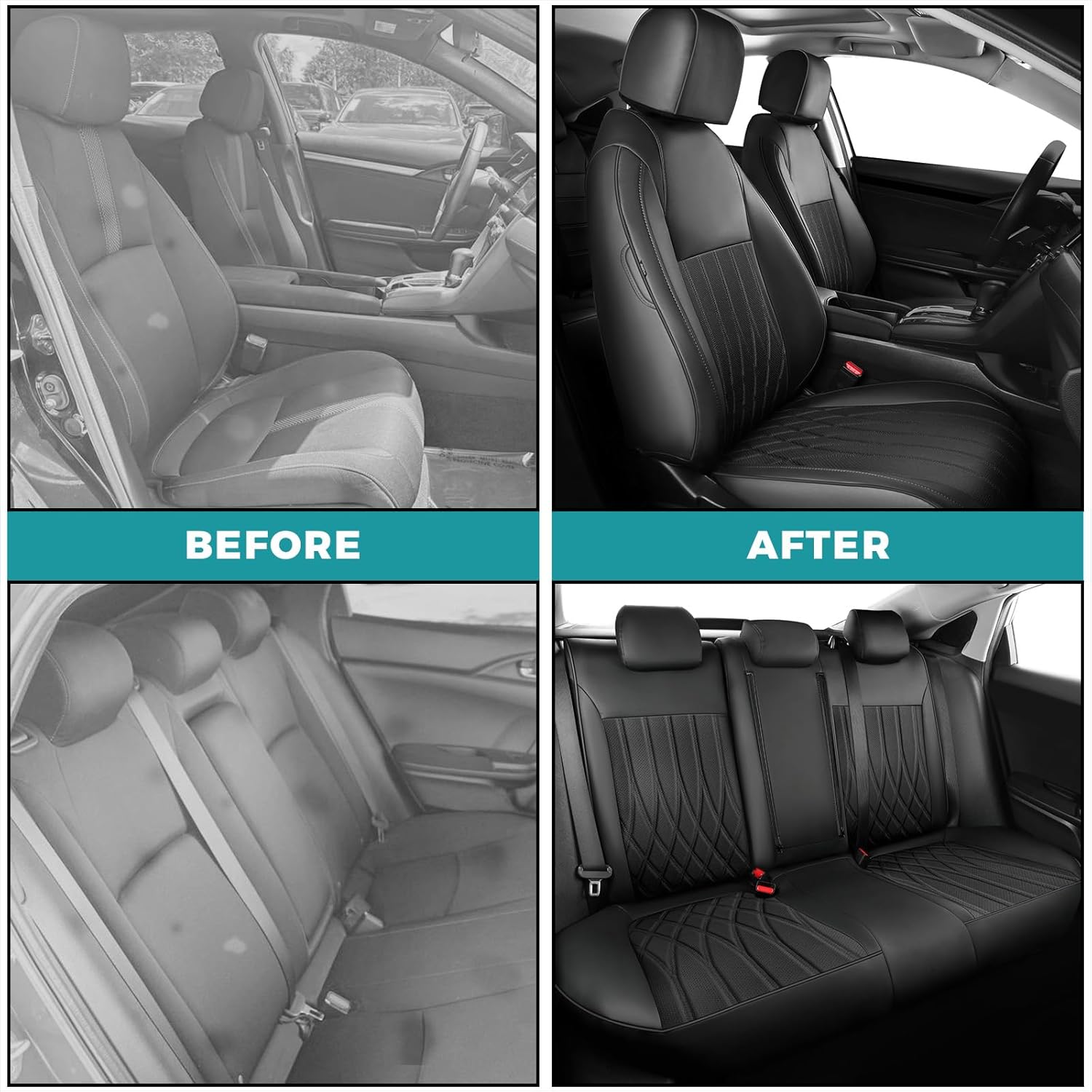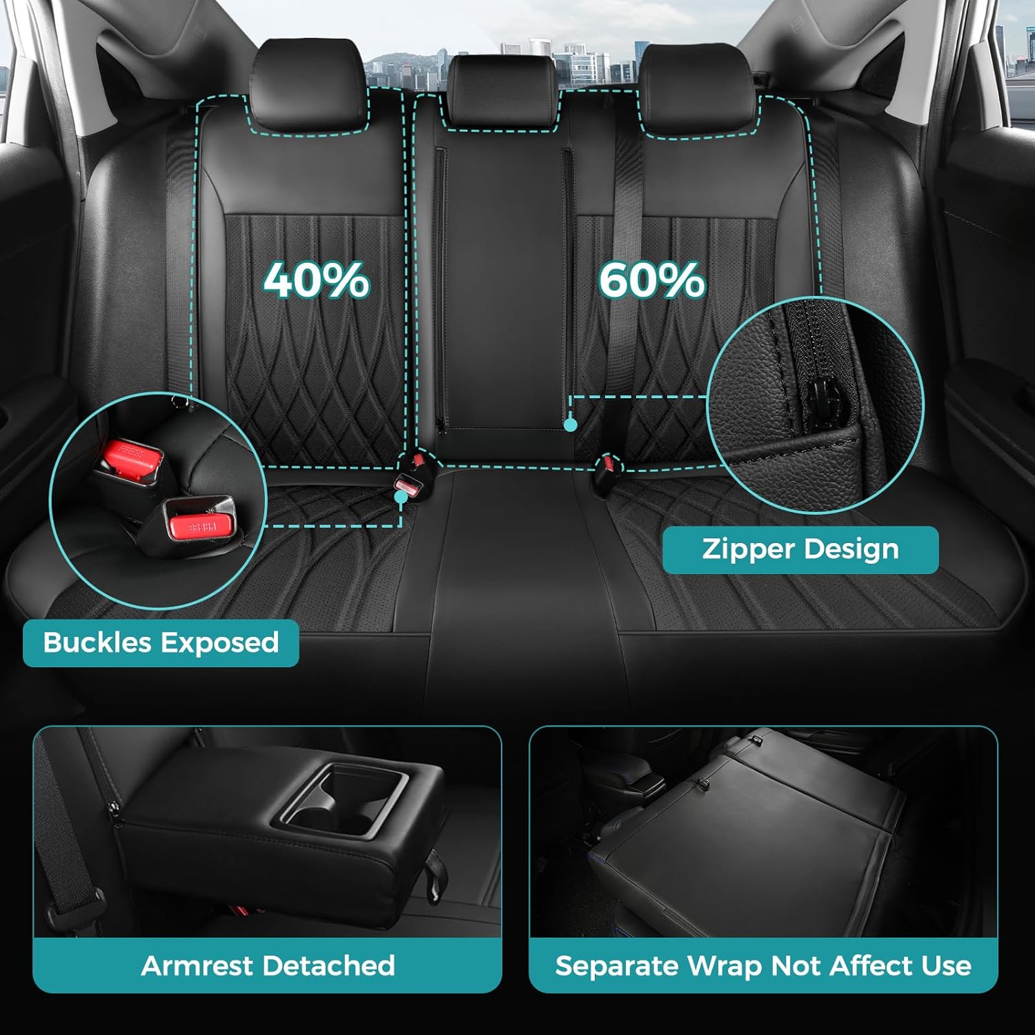 Seat Covers for Honda Civic Sedan 4DR Sedan EX 2022 2023 2024 2025.Faux Leather Car Seats Cover Full Set (Rear Row 40/60 Split & Folding Backrest)-Black