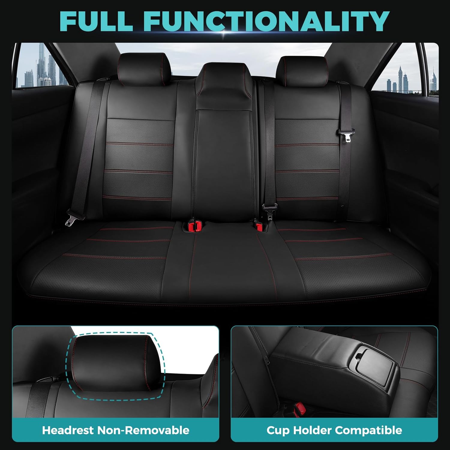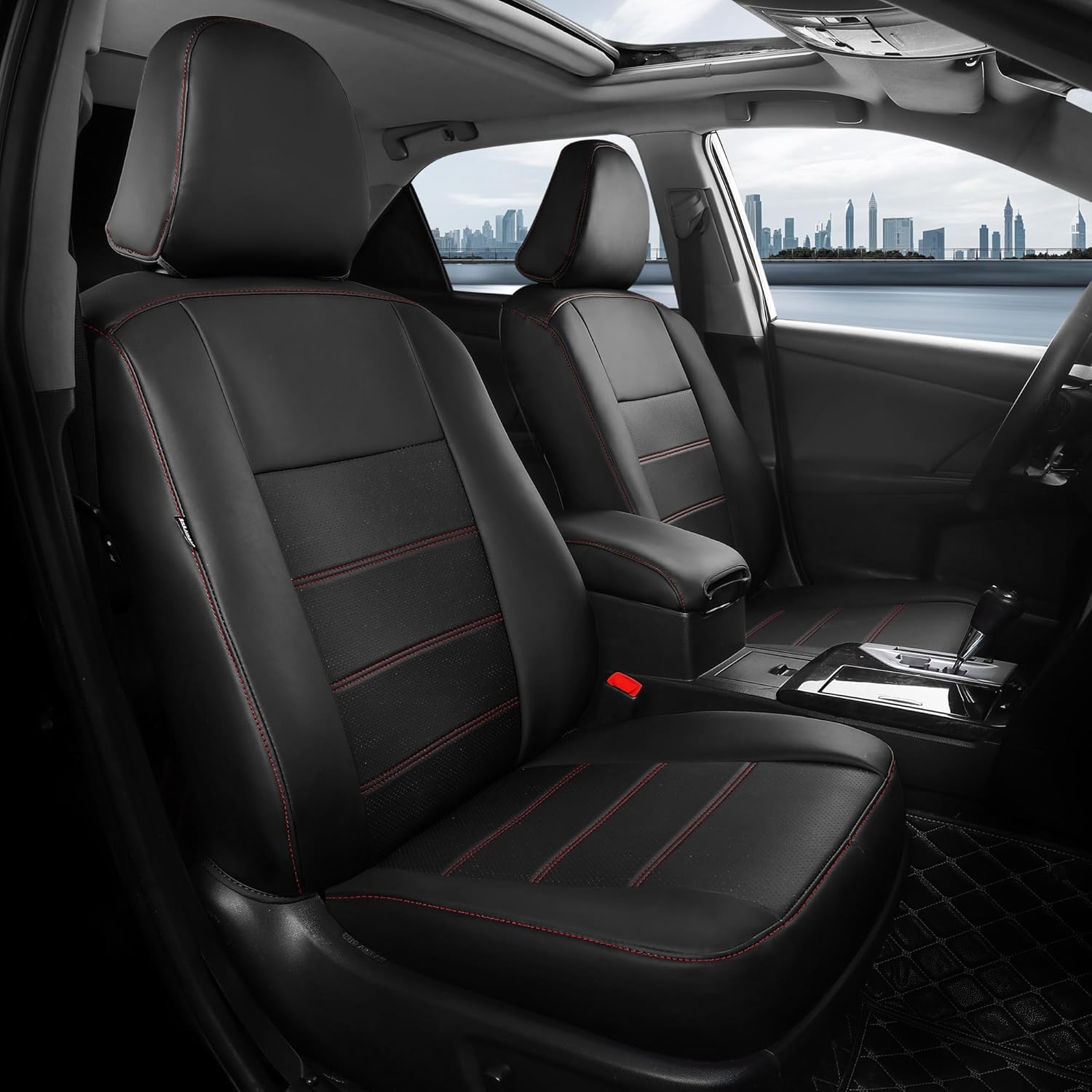 for Toyota Camry Seat Covers L LE XLE 2012 2013 2014 2015 2016 2017 - Custom Fit Car Seat Covers Full Set, Waterproof Breathable Luxury Leather Seat Covers for Cars, Black Red Not for Hybrid