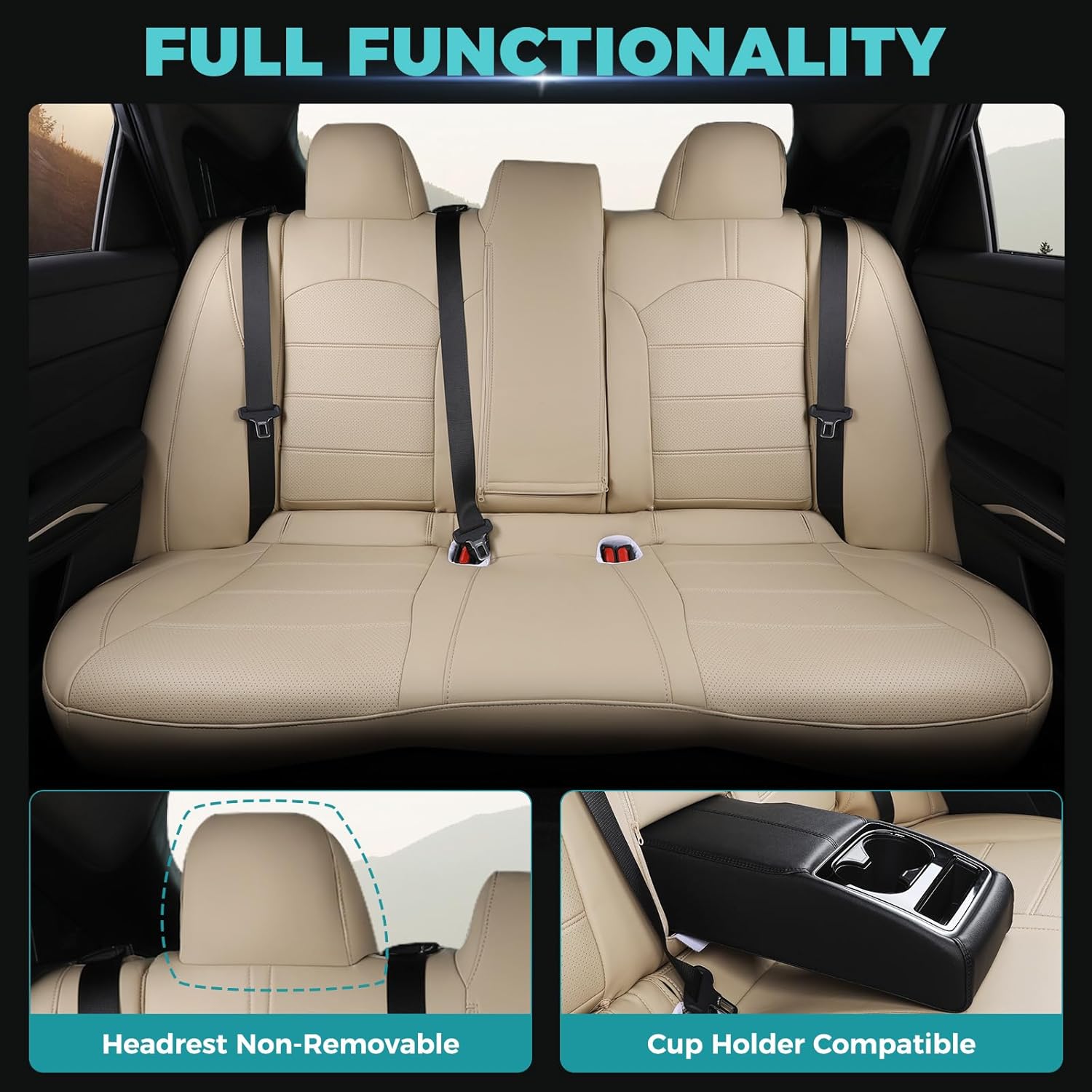 for Toyota Camry Seat Covers LE SE SE Nightshade 2018 2019 2020 2021 2022 2023 2024 - Waterproof Luxury Leather Seat Covers for Cars, Custom Fit Car Seat Covers Full Set, Beige Not for Hybrid
