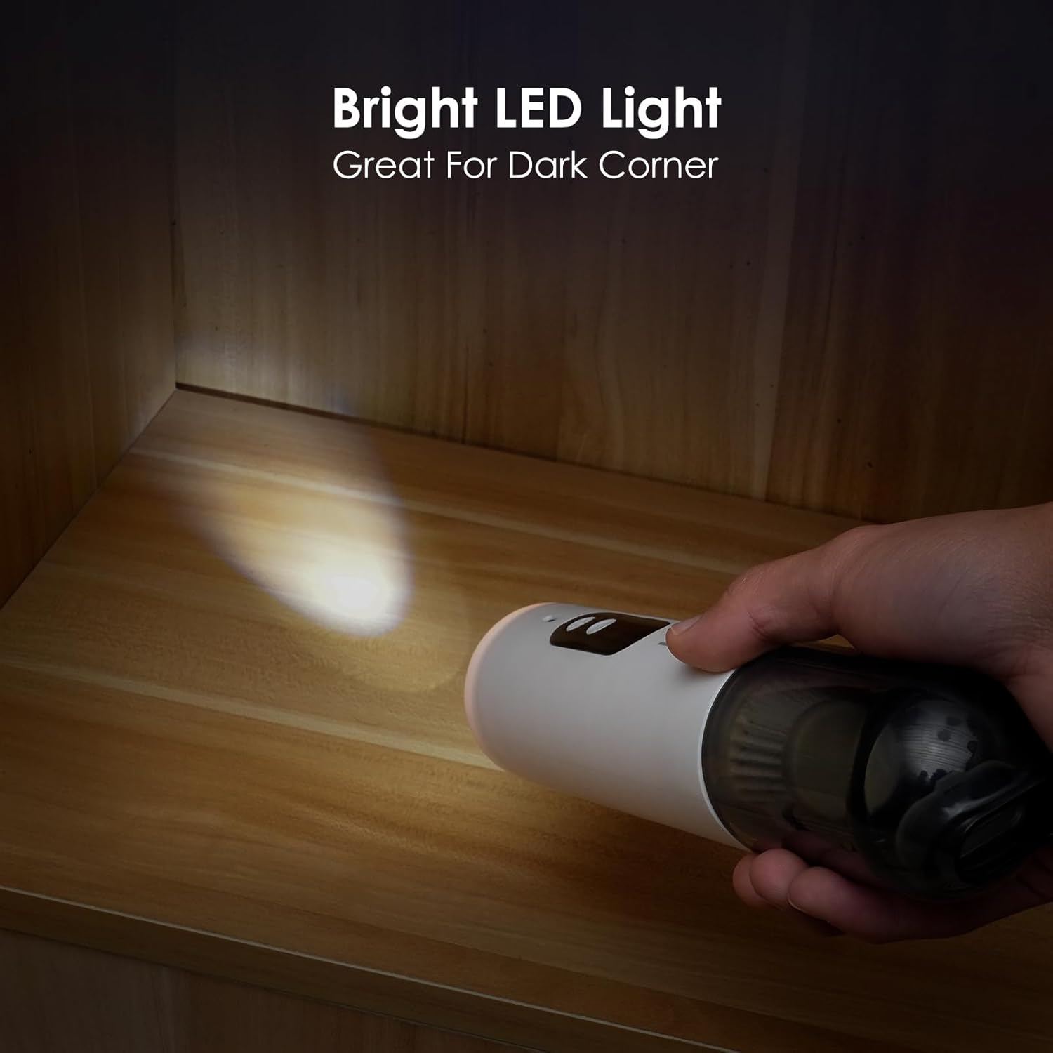 - 【5 in1 Multi-Function Hand Held Vacuum Cleaner】The PINXC mini vacuum cleaner offers five functions: vacuuming, blowing, inflating, LED lighting, and a safety hammer. Whether you need a portable vacuum for car, home cleaning, or emergency features like inflating and lighting, this compact vacuum does it all with ease.