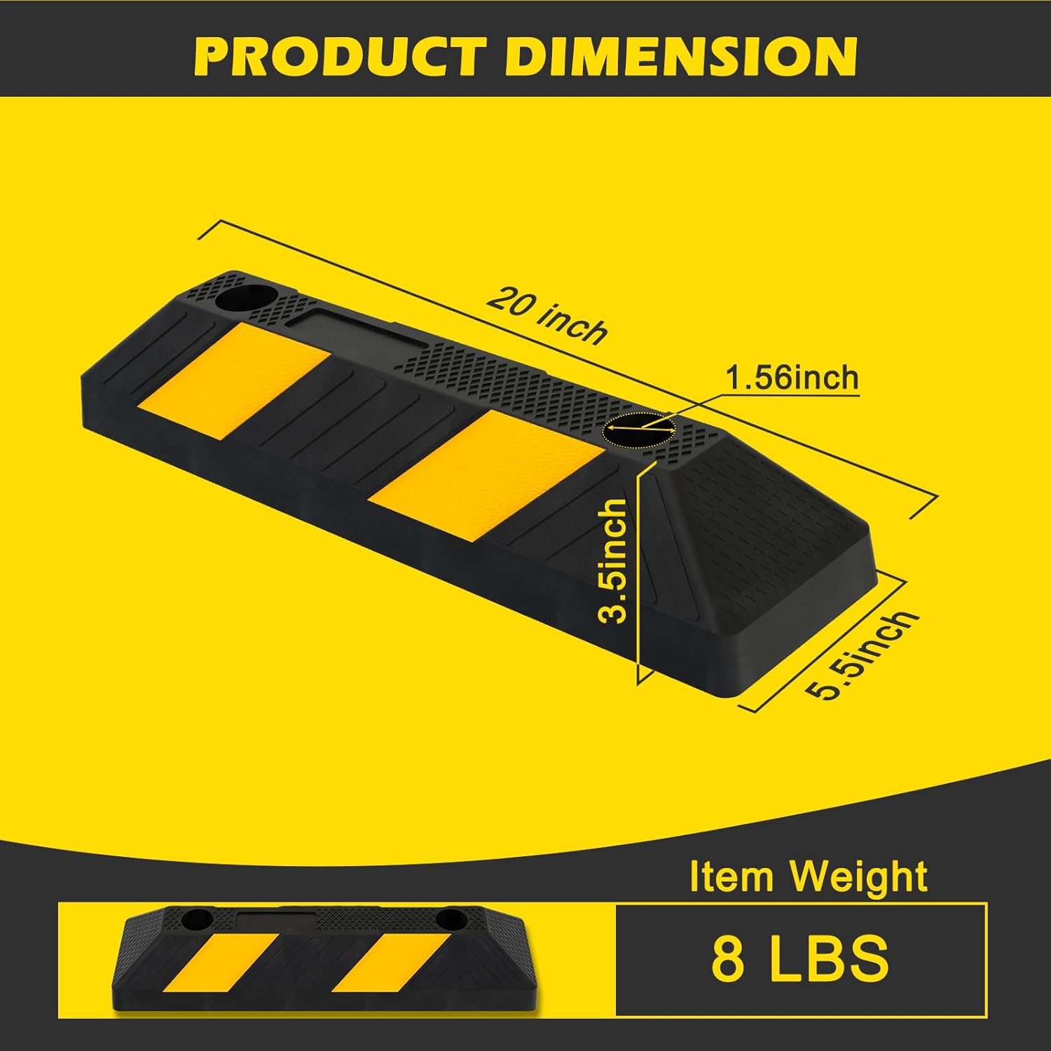 - Safety Upgrade: Rubber parking curbs are more effective in preventing tires from rolling over parking stops and avoiding collisions with walls or other parked vehicles. They better secure cars to the ground, making every parking experience safer. Product Size: 35.5”x 5.5”x 3.5”