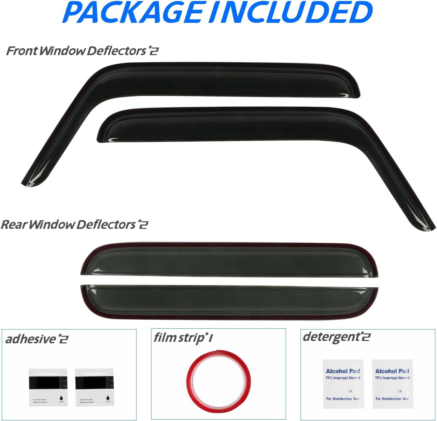 - Note: Please watch the install video carefully before installing the window deflectors. If there is any questions about the vent shades, please feel free to contact us. We will reply to you in 24hrs