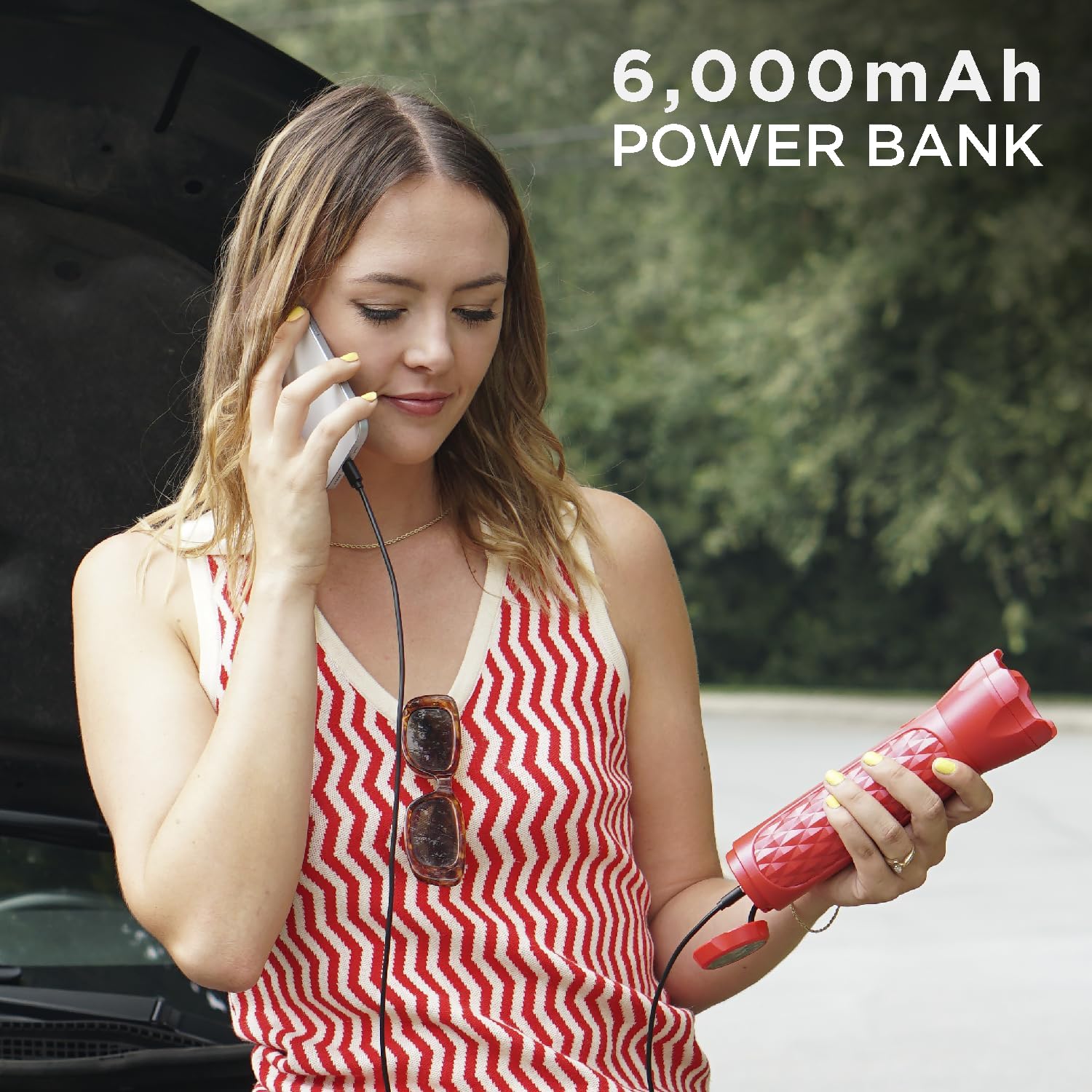 BoostHero Portable Car Battery Jump Starter, 6,000mAh Power Bank, LED Flashlight, with Smart Jumper Cables for up to 6.0L Gas/4.0L Diesel Engines (Red)