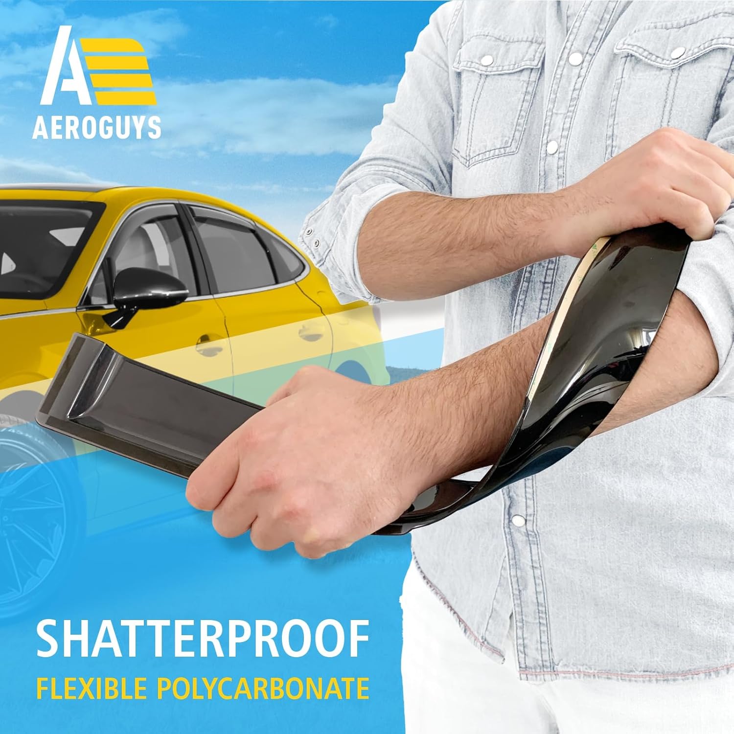 - Incredibly Durable AEROGUYS Auto Window Deflectors – They are made with strong and tough polycarbonate which is clear and scratch-resistant. They also provide UV protection making your ride more comfortable under all weather conditions.