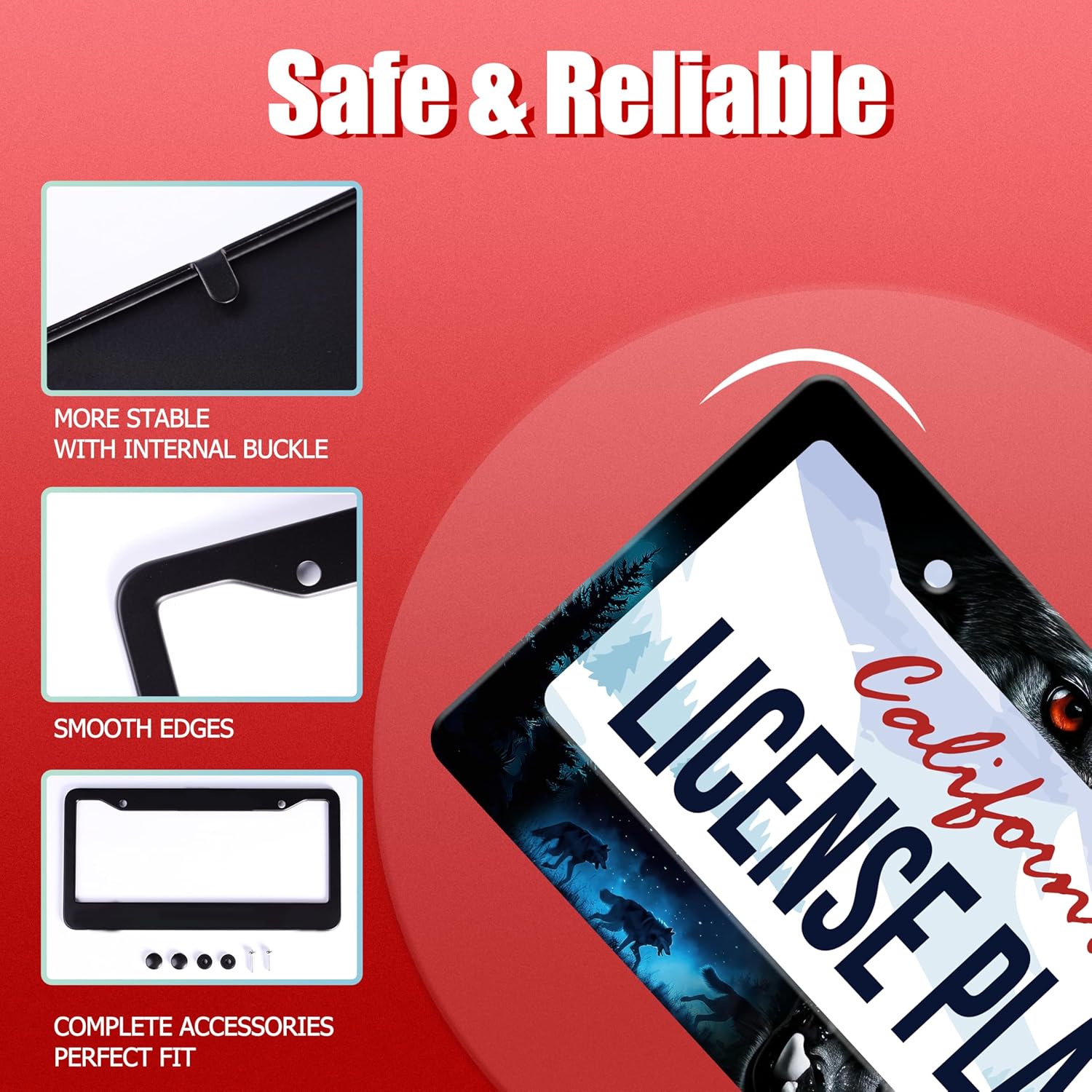 - 【Standard License Plate Size】:Our license plate frame size is 12.2 x 6.3 inches. This license plate frame will fit most of the standard license plates in the United States and Canada, and perfectly match your car license plate accessories.