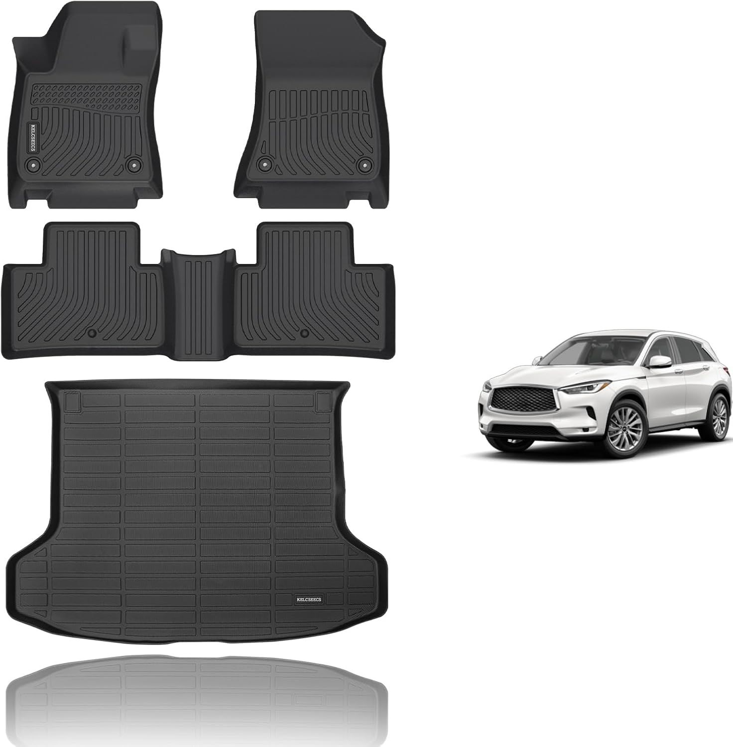 KELCSEECS® Floor Mats & Cargo Liner Custom for 2019-2025 Infiniti QX50 All Weather Protection TPE Floor Liners Front& Rear Row Full Set Infiniti QX50 Accessories Black