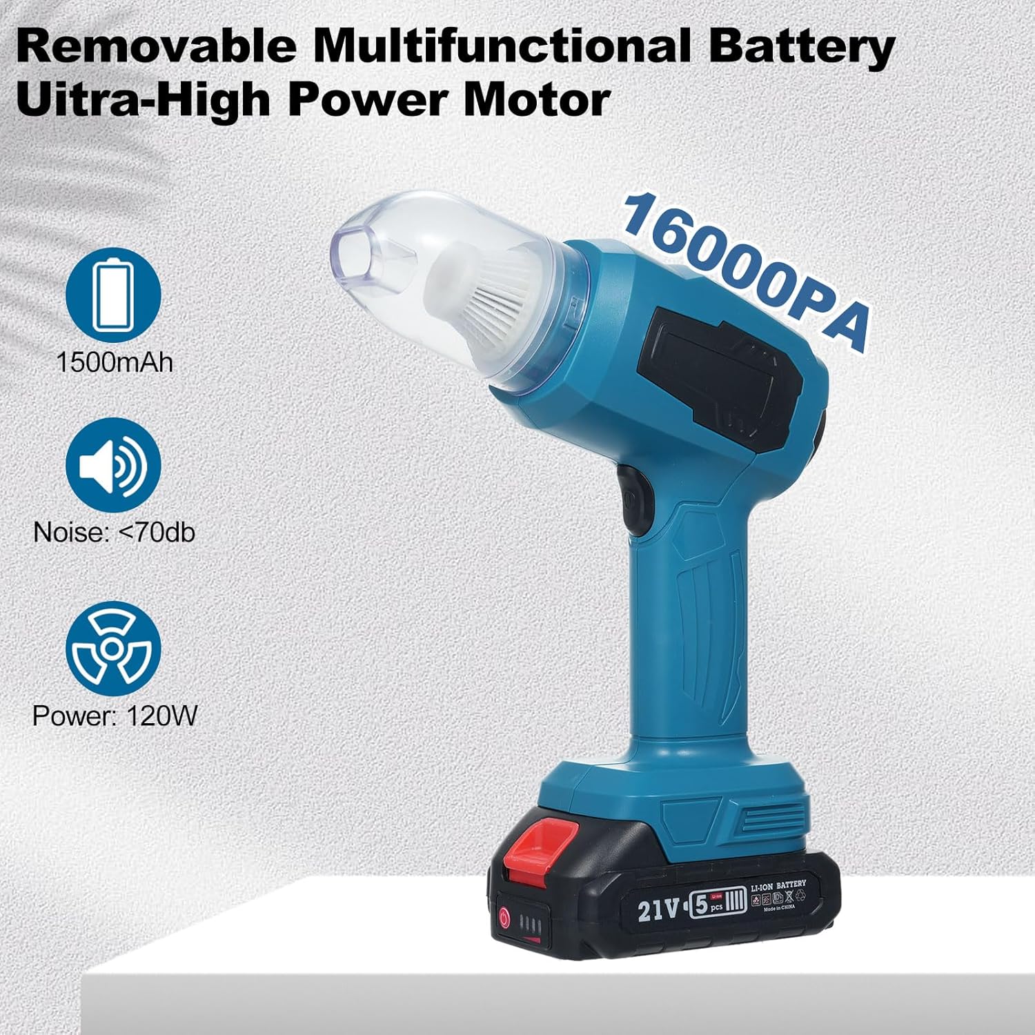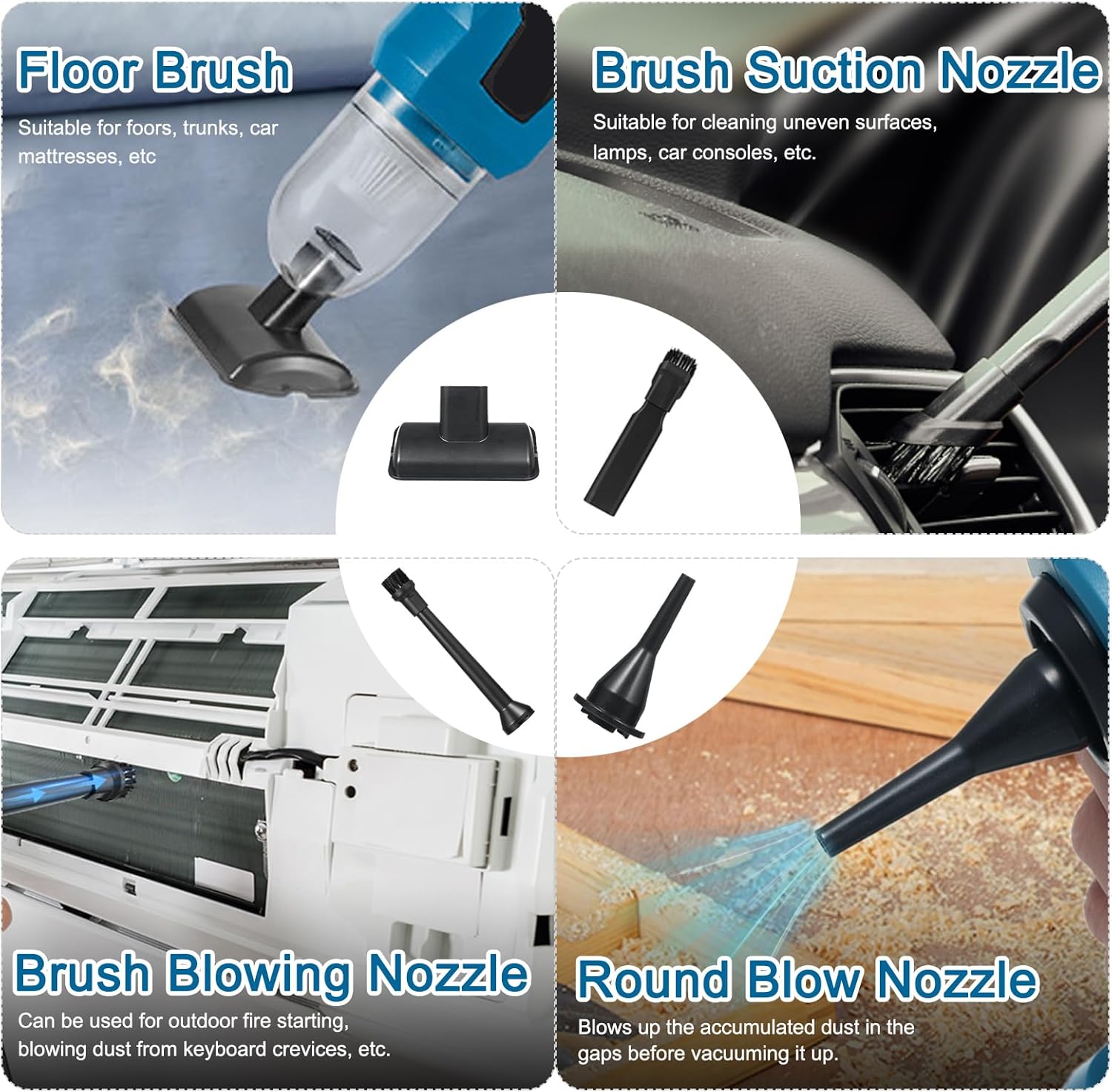 - 【Versatile Use】Mulcort small vacuum cleaner cordless excels in suction, blowing, and inflating functions. It provides powerful suction for thorough cleaning of car interiors, office spaces, and more. Cordless Car Vacuum Cleaner included blowing, with a maximum airflow of 700L/min, efficiently removes dust and debris from delicate surfaces, such as keyboard keys and office equipment. The inflating function is perfect for inflating swim rings, inflatable boats, and balloons. With accessories including an inflating nozzle, floor brush, cleaning brush, and blowing nozzle, this vacuum meets various cleaning needs and offers comprehensive versatility.