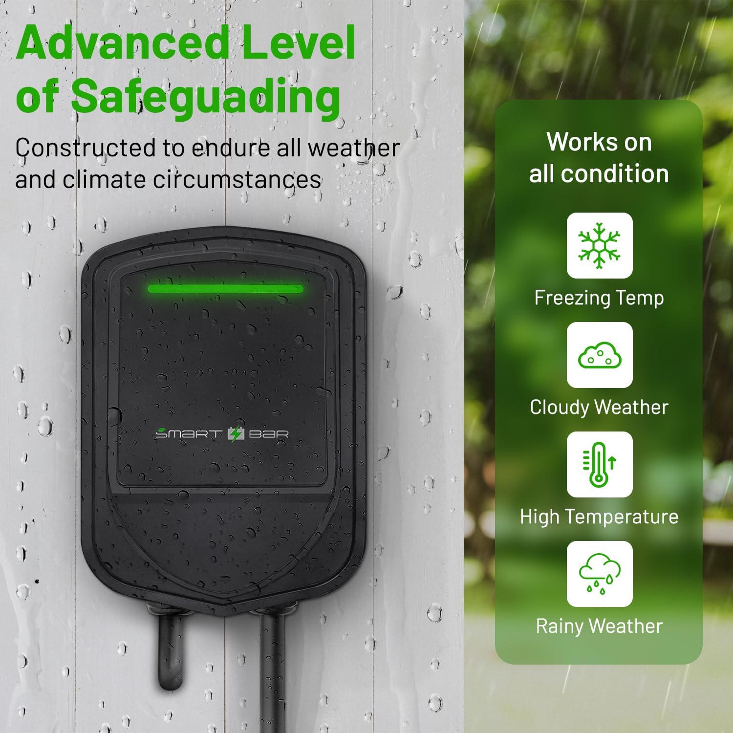 - 【BUILT-IN SAFETY FEATURES】 Constructed from premium materials, this electric car charger offers a suite of safety features, including lightning protection, leakage prevention, grounding protection, and safeguards against over/under voltage, overcurrent, and overheating. With an IP66 waterproof rating, it’s built for reliability.