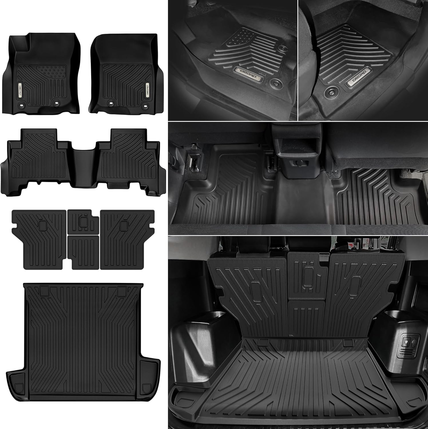 OEDRO Floor Mats Fit for Toyota 4Runner 2013-2024 5-Seater, Custom Fit TPE All Weather Trunk Mat with Backrest Car Accessories, Odorless Anti-Slip Back Seat Protector, Full Mat Set, Black