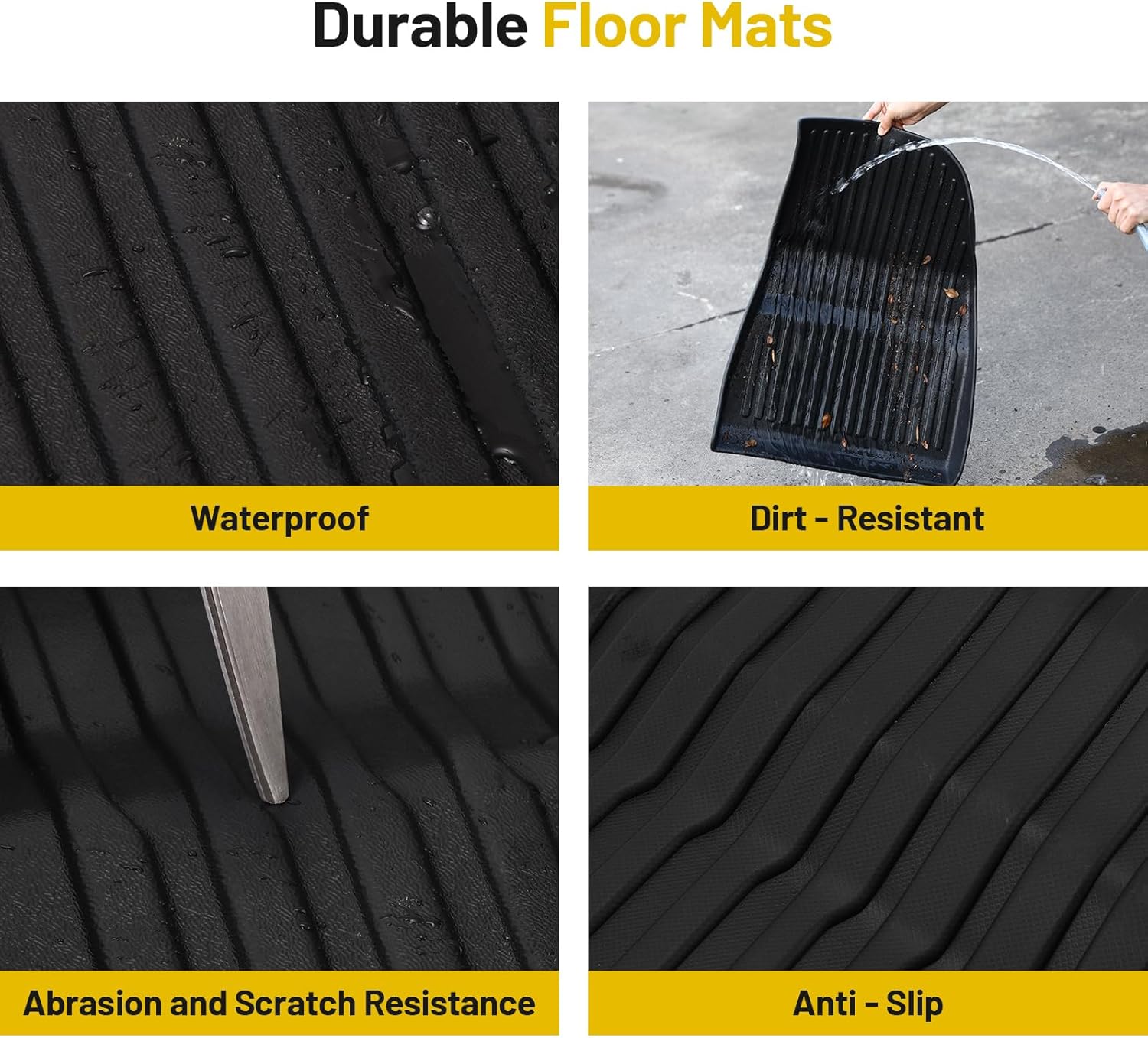 - Non-Slip Texture: Featuring a textured, non-slip design and reinforced with sturdy rivets, these car truck mats stay firmly in place even under heavy use, maintaining the cleanliness and integrity of your vehicle.