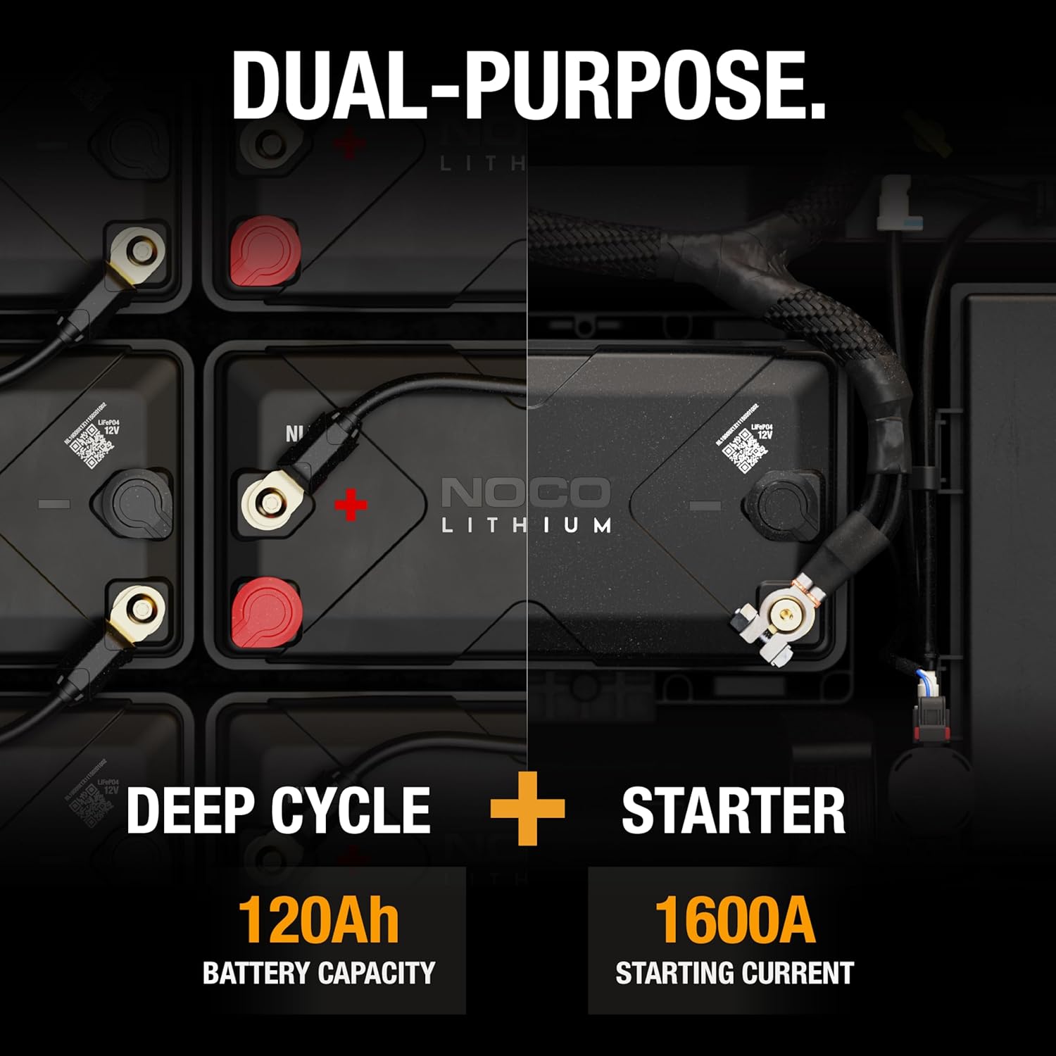 NOCO Lithium NLX31: 12V Dual-Purpose LiFePO4 Lithium-Ion Battery - 120Ah Deep-Cycle and 1600A Group 31 Starter Battery - UL Listed - Built-In Dynamic BMS
