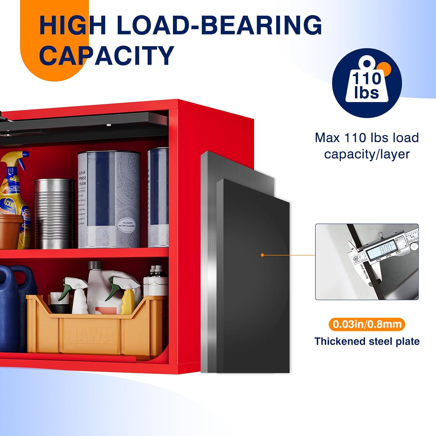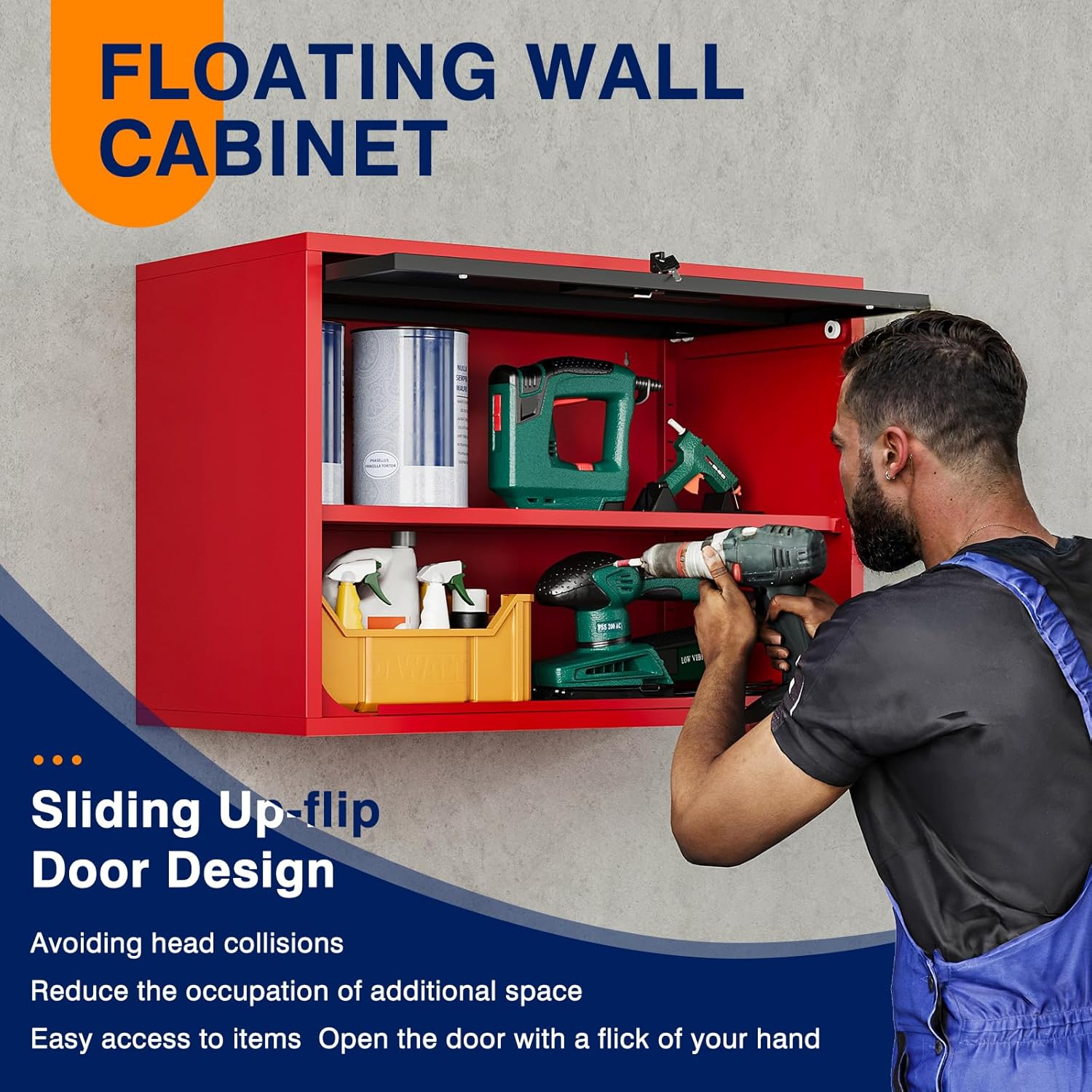 Yizosh Metal Garage Wall Cabinet with Doors and Shelves,Wall Mounted Metal Storage Cabinet, Floating Steel Tool Cabinet for Garage,Basement,Kitchen,Warehouse (Red Black,21.6" H)