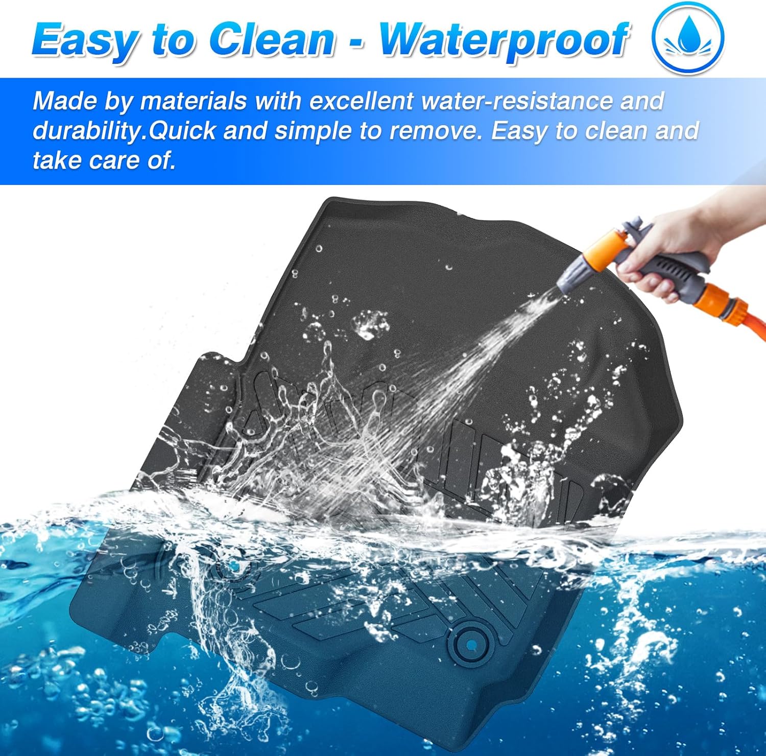 - All Weather Protect & Cleaning -- The F-250 floor mats are waterproof, and the groove design forms channels to collect water, mud, snow, debris, ect, to avoid accidental skidding and stains to original car carpets. Easy to clean by rinsing it with water, and dry with towel.
