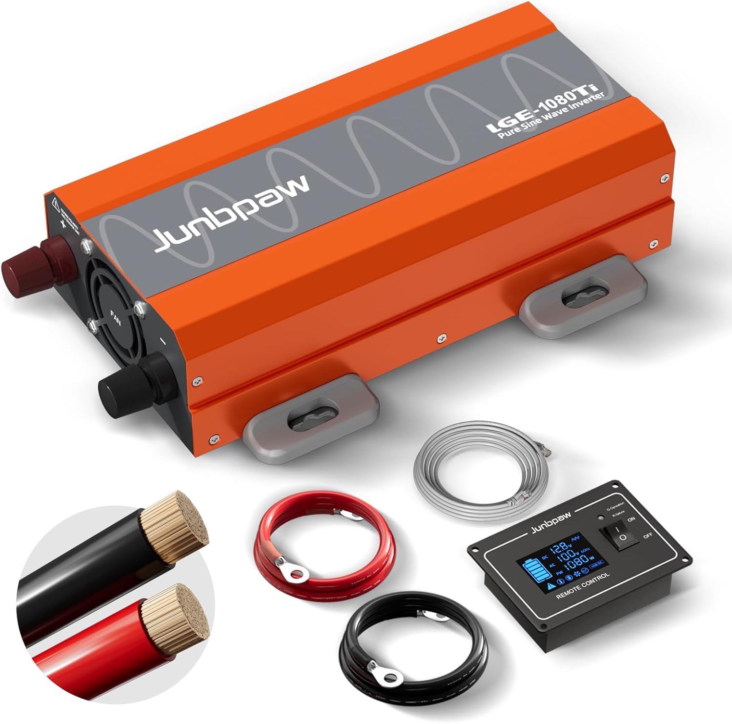 - 【1080 Watt Pure Sine Wave Inverter】Junbpaw utilizes advanced pure sine wave technology to deliver stable AC power, equivalent to grid quality, safeguarding and prolonging the lifespan of your electronics and appliances.
