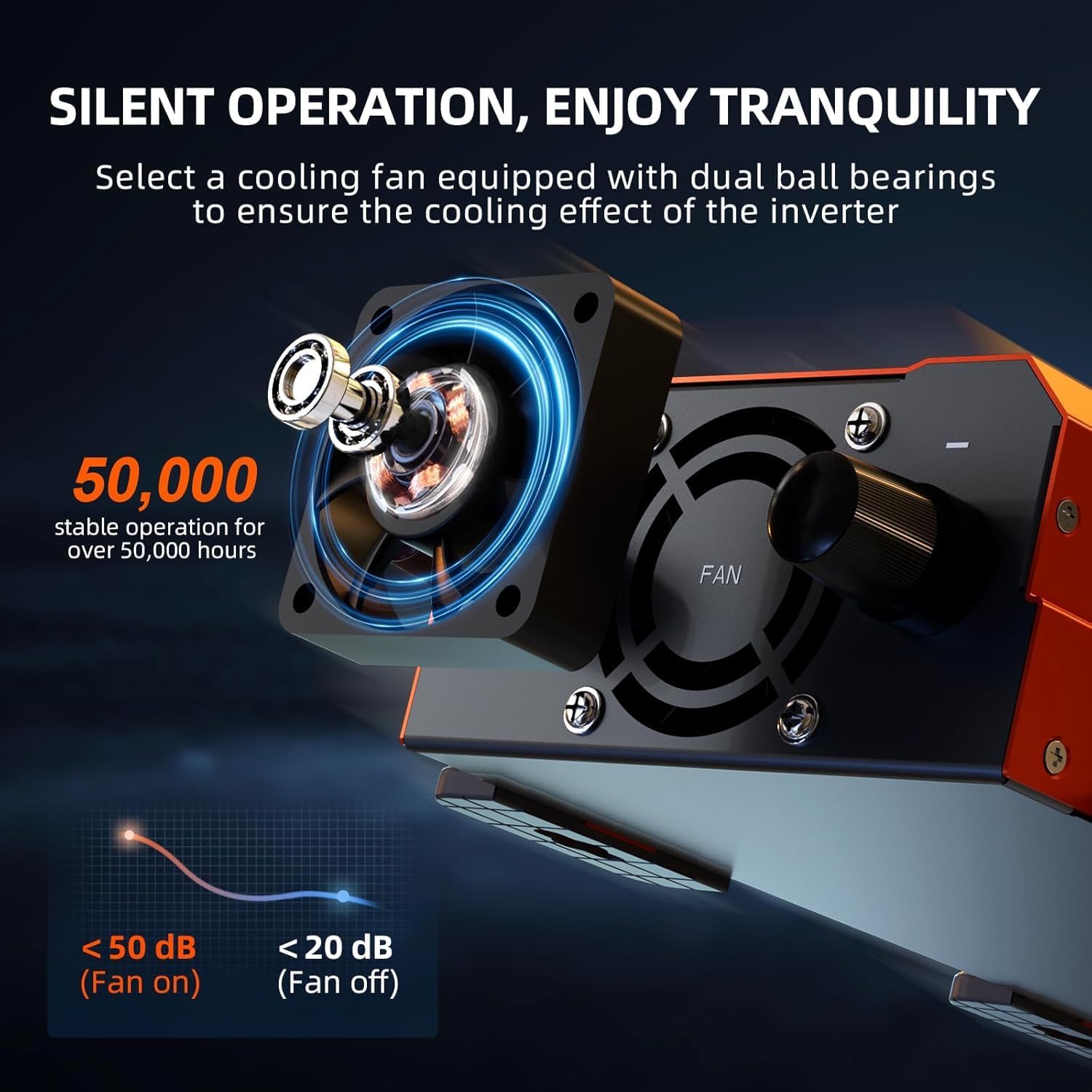 - 【Dual Ball-bearing Fans】The Junbpaw pure sine wave inverter built-in dual ball-bearing fans ensure quieter performance, an extended lifespan, and stable operation for over 50,000 hours.