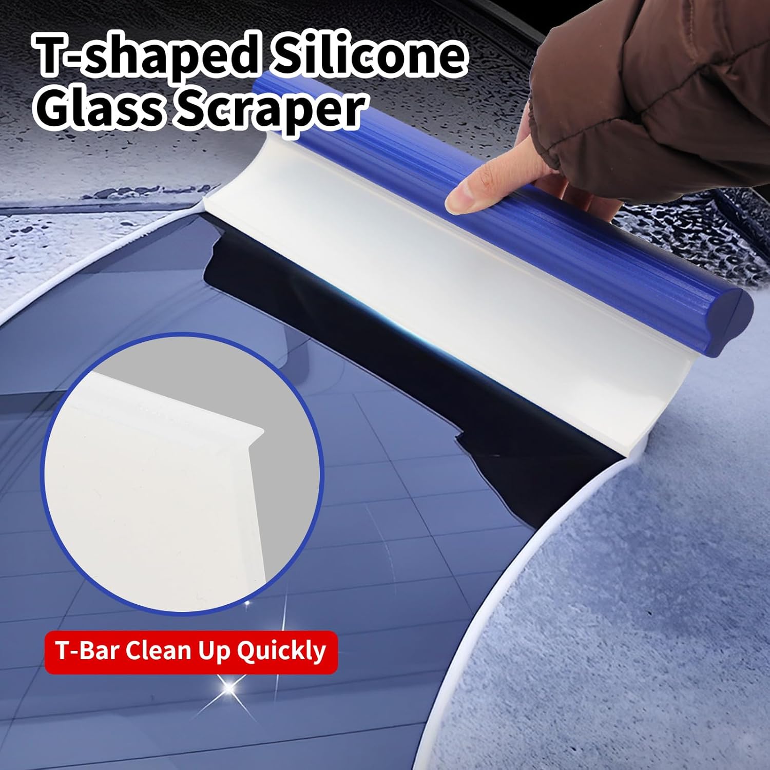 - Efficient Cleaning with T-Bar Design: The silicone scraper is 30cm/12 inch wide,The unique T-shaped squeegee design provides a larger cleaning area, quickly and efficiently removing water stains and dirt from windows and car surfaces