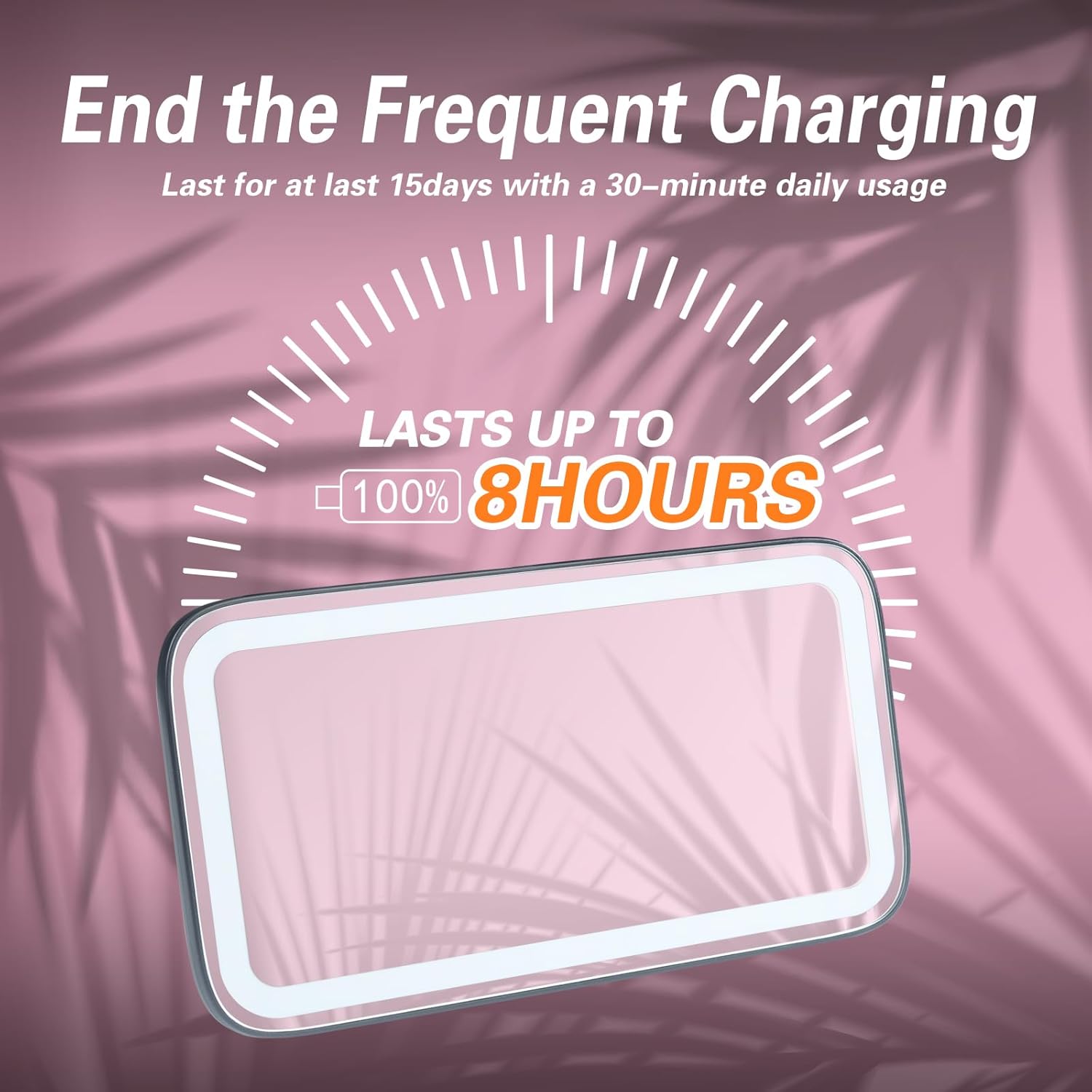 - Rechargeable Lithium Battery: Car visor vanity mirror Built-in lithium battery, which can be charged through the socket, computer, mobile power. You could to charge the car visor mirror with our 10ft type-c cable. A full charge lasts 8 hours, and if you use it for 30 minutes a day, you can use it for at least 15 days.