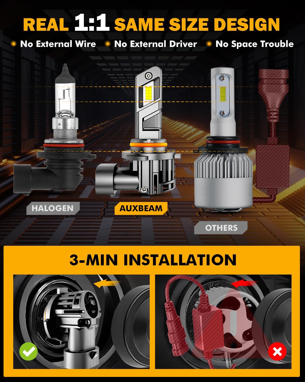- 99% Super Compatible: Built-in intelligent decoding chips, highly compatible with 99% models' system without causing errors and flickers. Note:1% sensitive models still need decoders. Please message auxbeam to help slove the problem.