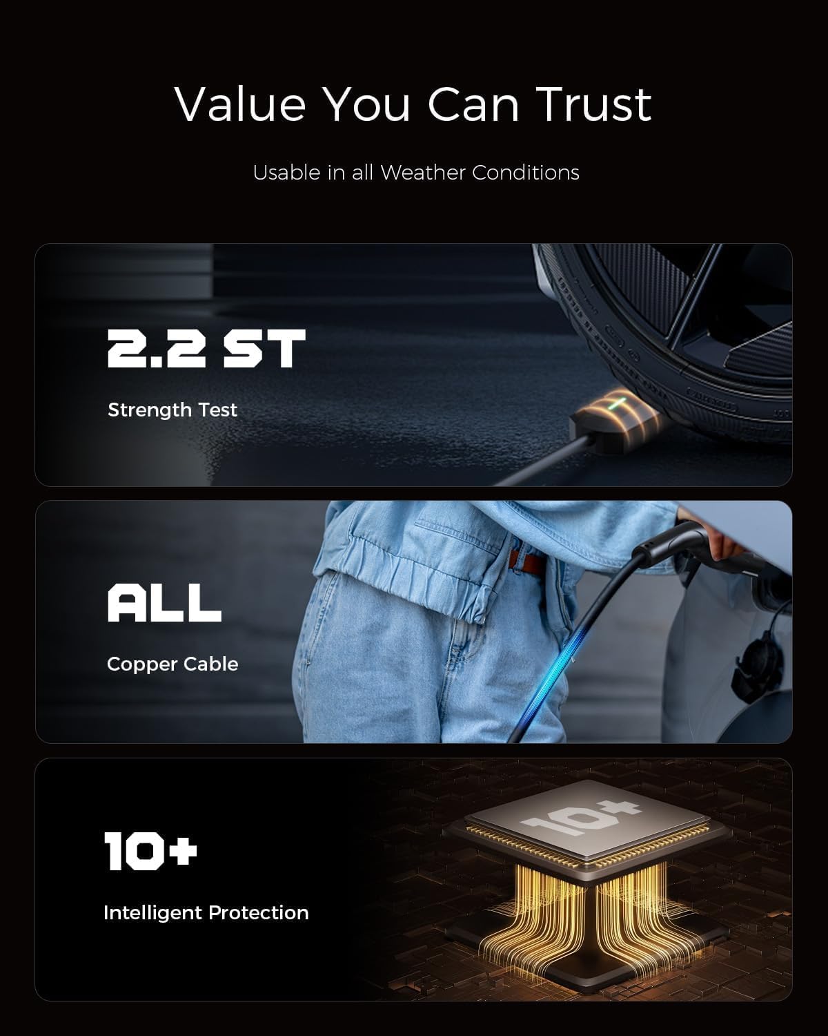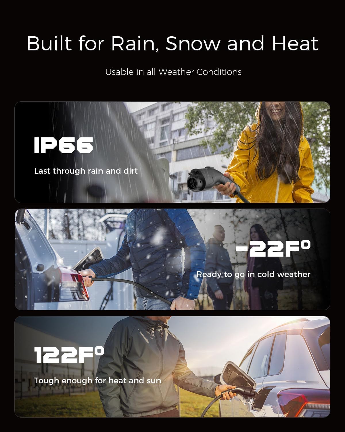- 【Extended 25FT Cable Length】Equipped with an impressive 25-foot cable, you can effortlessly charge your electric vehicle (EV) at home or through public charging stations.