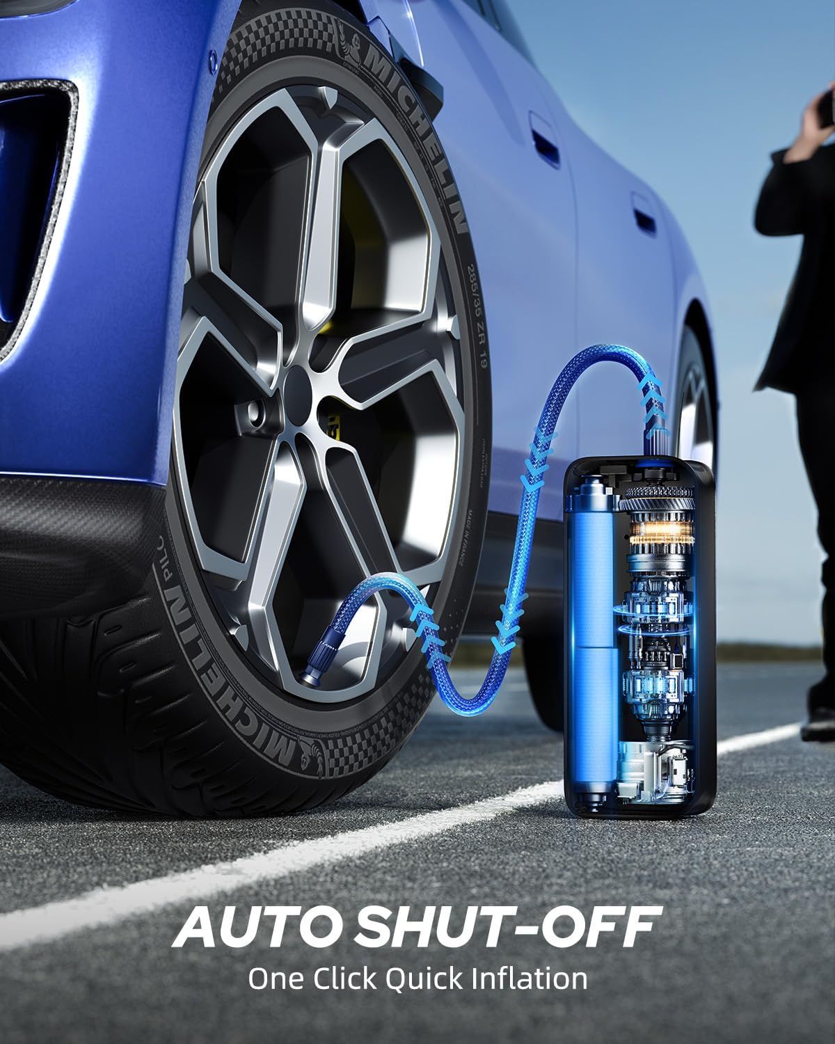 AUTOONE Tire Inflator Portable Air Compressor - 4X Faster 150PSI Cordless Air Pump with Digital Tire Pressure Gauge, 12V Car Power Adapter - For Car, Motorcycle, Bike, Ball and More