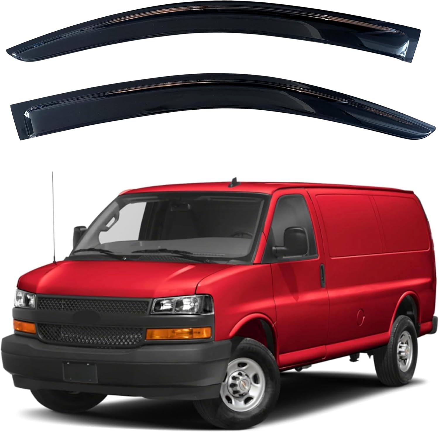 - 【Perfect Fit】KPY window visors rain guards vent deflectors compatible with 1996-2014 Chevy Express Van / GMC Savana 1500, 1996-2024 Express Van / Savana 2500 3500, 2009-2024 Express Van / Savana 4500, 2003-2007 GMC Topkick C4500 C5500, 2003-2009 Chevy Kodiak C4500 C5500.(For Front 2-Doors Only)